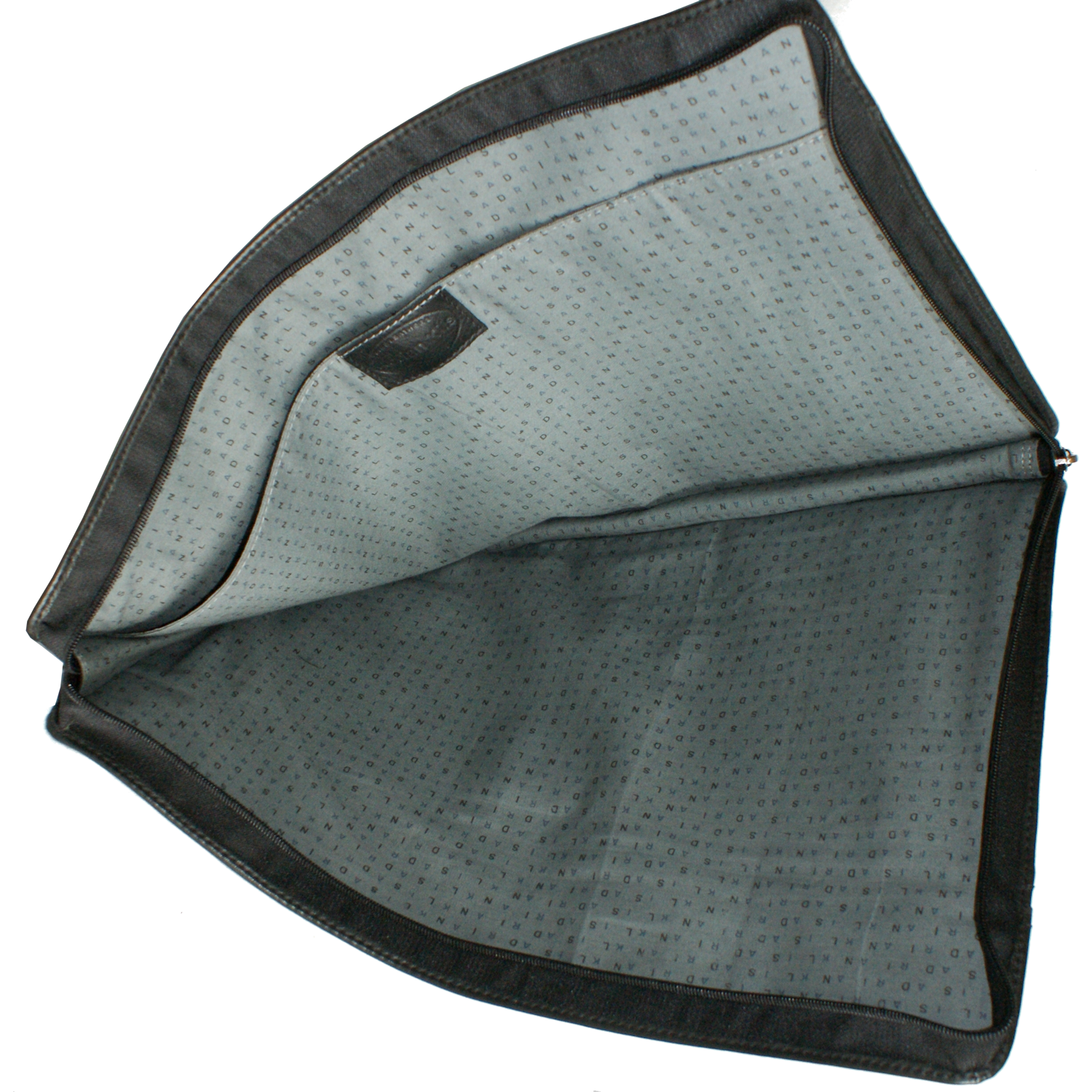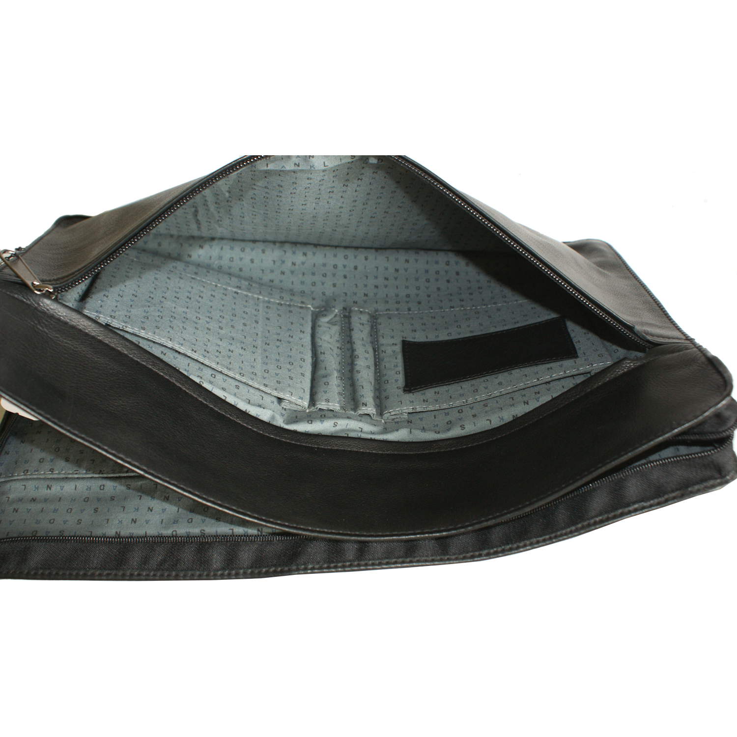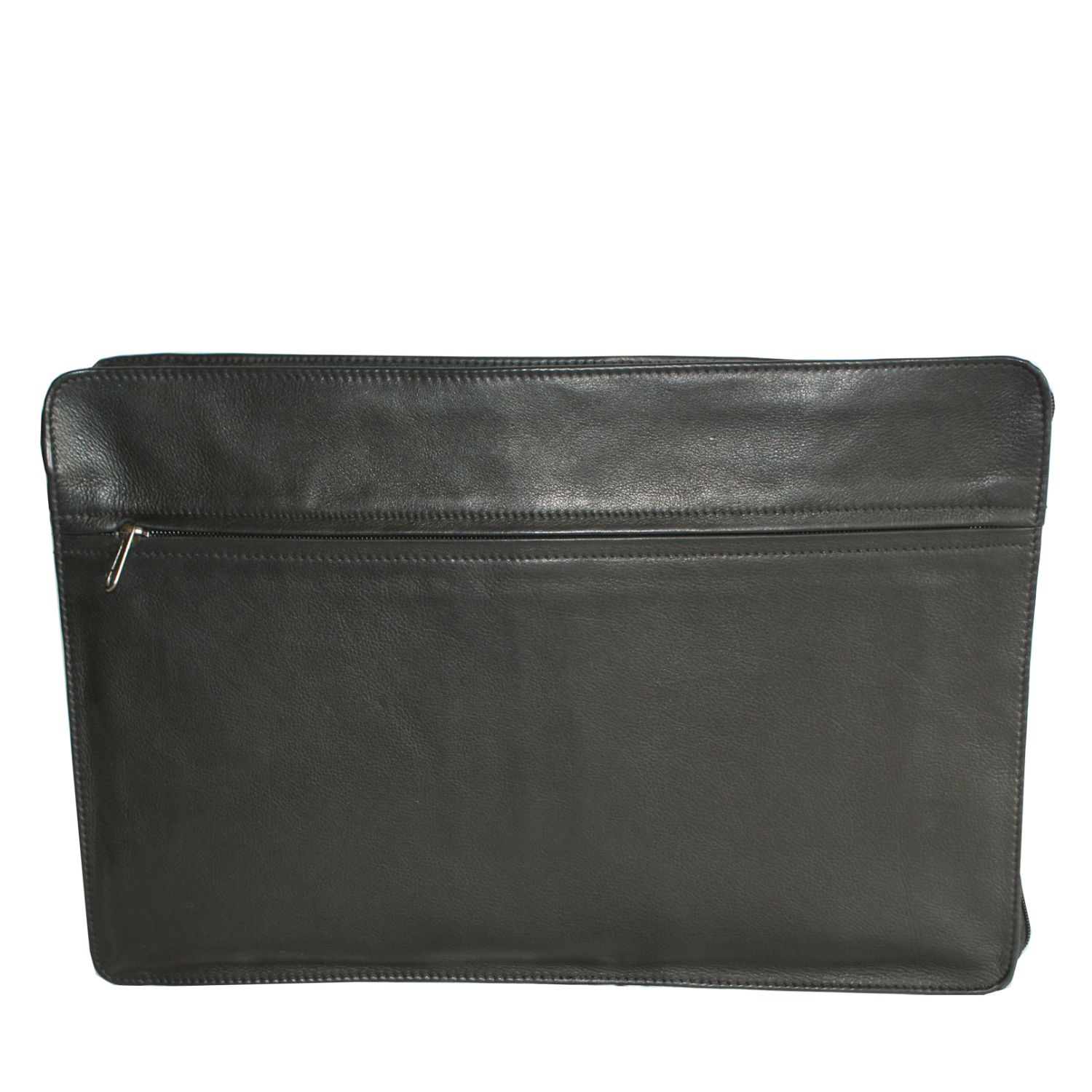 File folder is closed with zipper half around, This style is also available in distressed leather |
