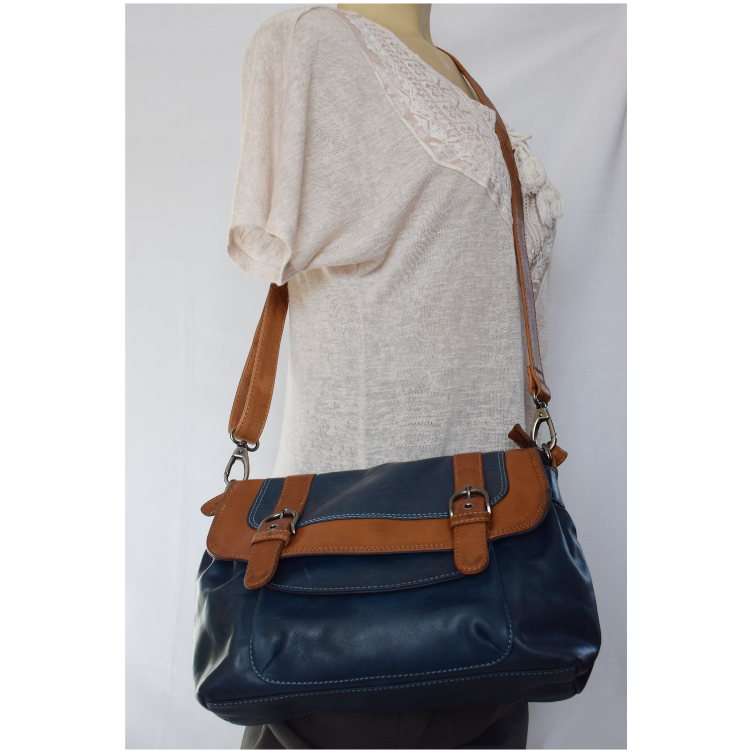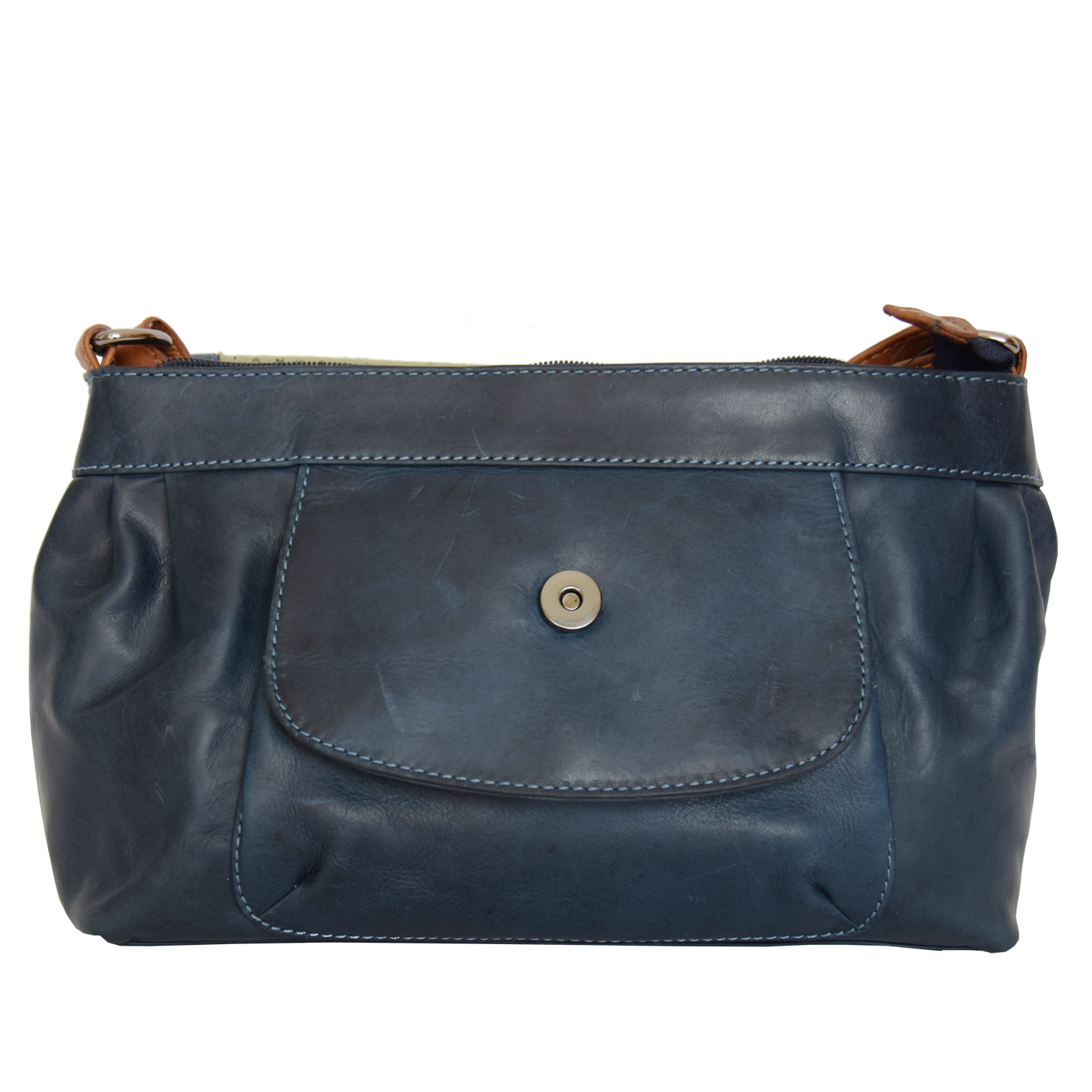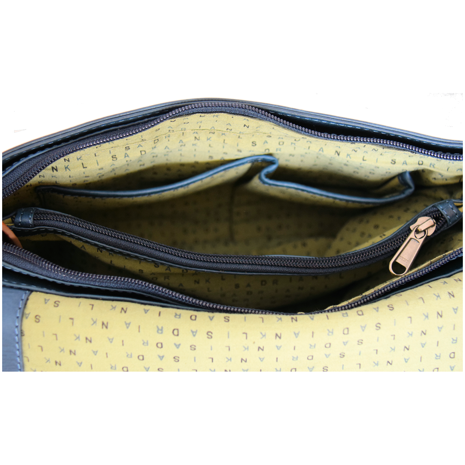 Description: | 1 adjustable removable handle, 1 removable adjustable shoulder strap in brown color Bag is closed with 2 magnetic snaps Front inside: 1 pocket closed with magnetic snap Back: 1 pocket closed with zipper Inside: 3 compartments Comp. I inside: open with 2 open pockets Comp. II: closed with zipper Comp. III inside: open with 1 pocket closed with zipper Bag is also available in red color and in distressed leather |