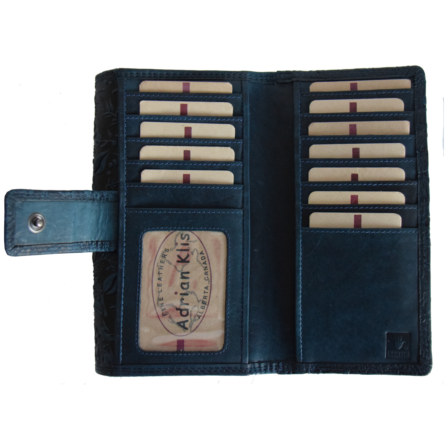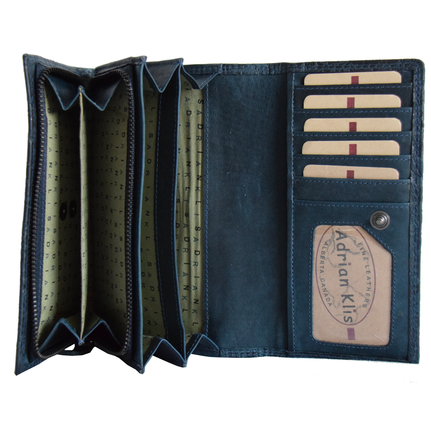 Description: | Wallet closed with flap and snap Wallet has 2 compartments Comp. I: closed with strap and snap inside: 12 CC, 2 open pockets, 1 ID Comp. II: closed with flap and snap Inside: 5 CC, 1 ID, 3 open pockets, 1 pocket closed with zipper and 2 open pockets inside |