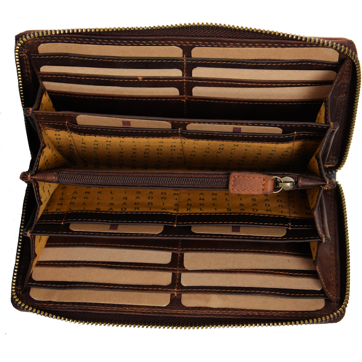 Inside: 5 compartments, 16 CC, 1 ID, 1 pocket closed with zipper