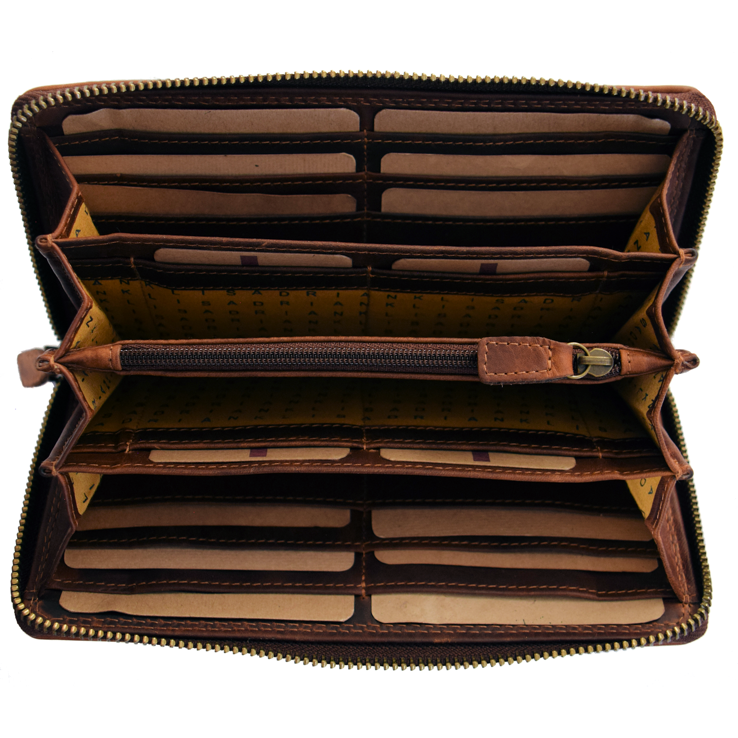 Inside: 5 compartments, 16 CC, 1 ID, 1 pocket closed with zipper