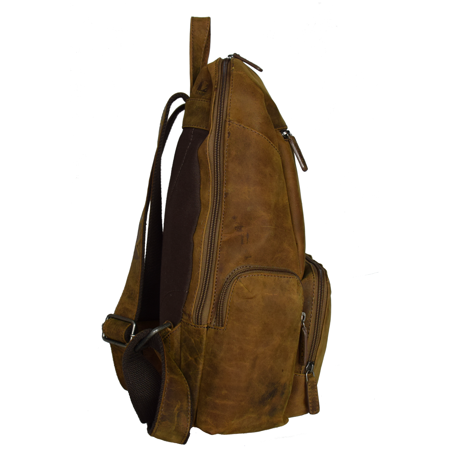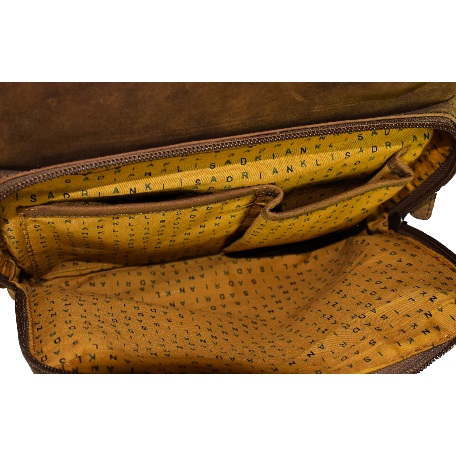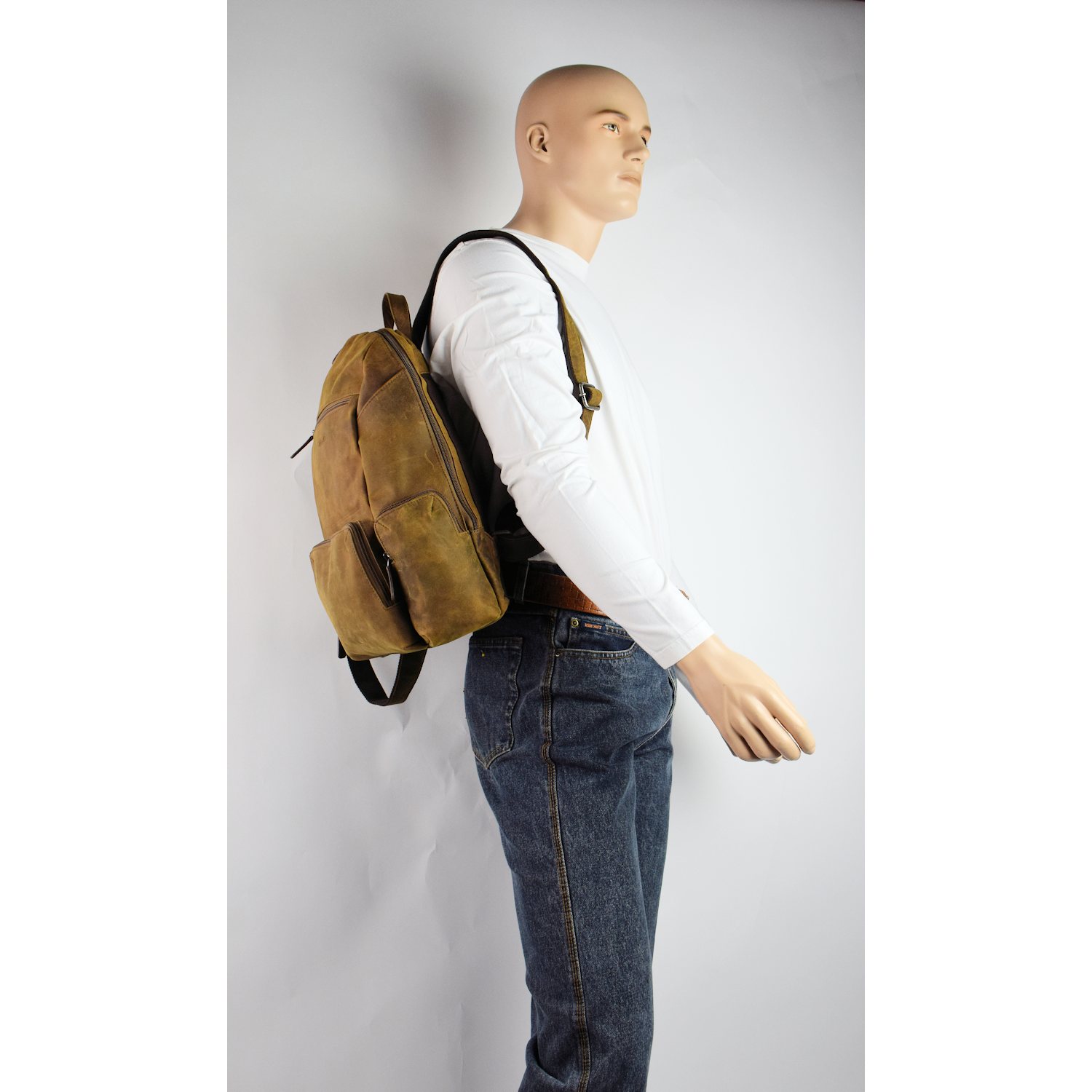 1 handle Front: 2 pockets closed with zipper Front pocket: inside: 2 open pockets 2 side pockets closed with zipper Back: 2 adjustable shoulder straps padded with canvas outside 1 main compartment closed with zipper inside: 1 pocket closed with zipper, 1 pockets padded for laptop |