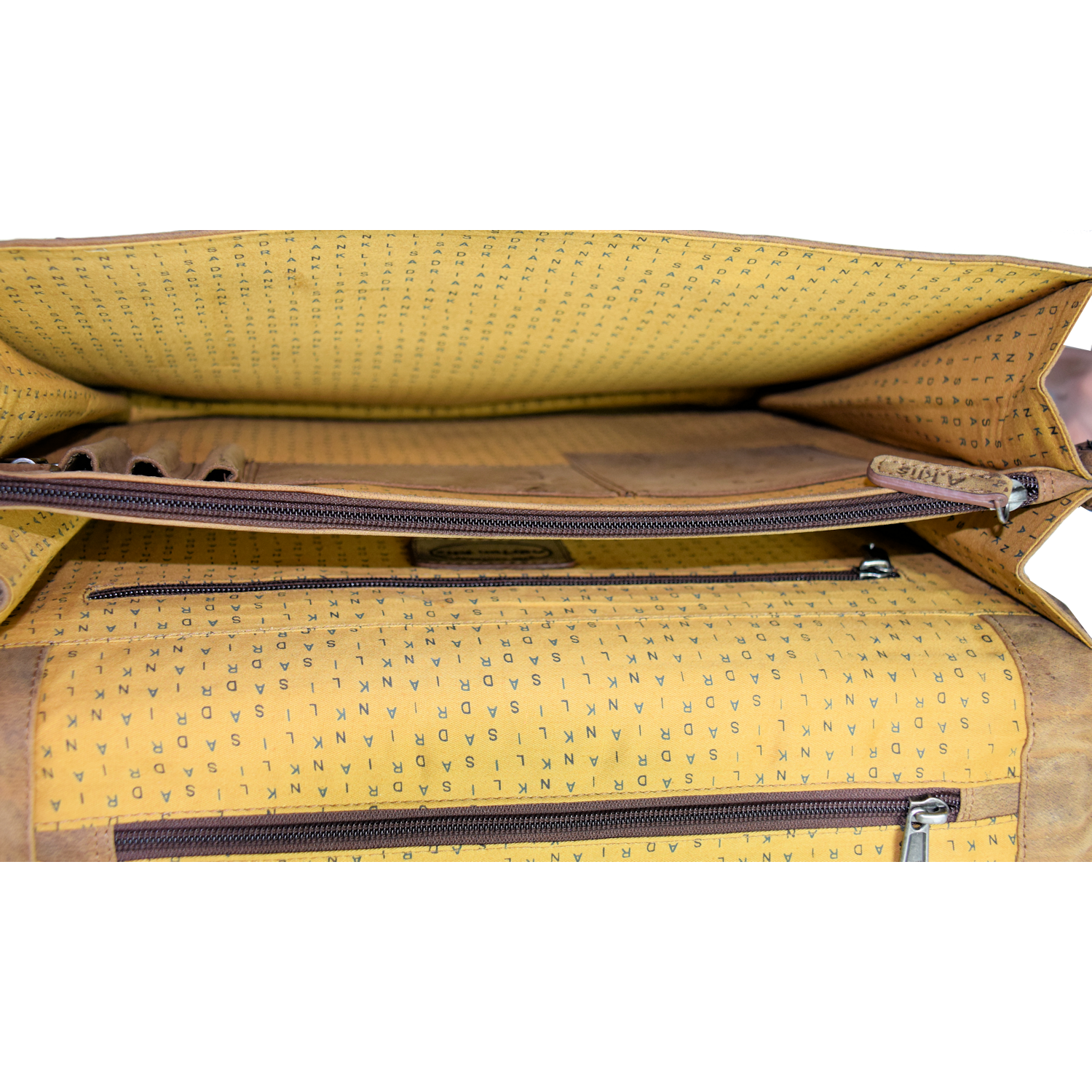closed with flap and one snap with lock,3 pockets, 4 zipper, organizer inside, 1 handle, 1 shoulder strap attachable with spring carbine |