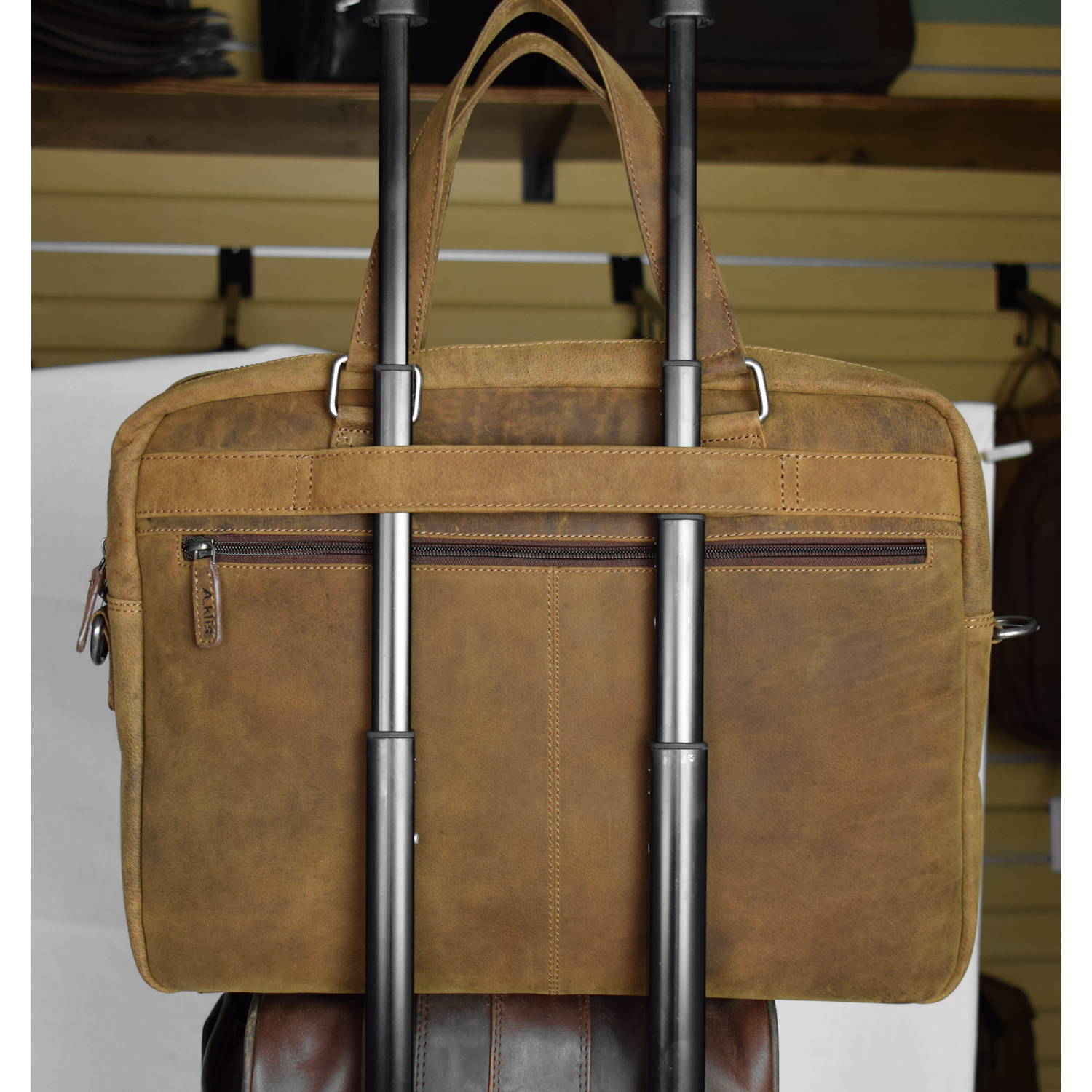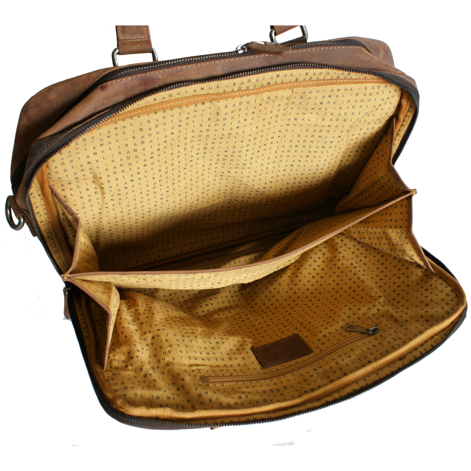 Briefcase has 1 removable adjustable shoulder strap, 2 handle. Front: 1 pocket closed with zipper inside: 2 open pockets, 3 pen holder, 4 CC, 1 main pocket. Back: 1 handle for trolleys, 1 pocket closed with zipper. 2 main compartments each closed with zipper. Inside compartment 1: 1 padded pocket for laptop closed with a Velcro strap, 1 open compartment Inside compartment 2: 2 large open pockets, 1 small pocket closed with zipper. |
