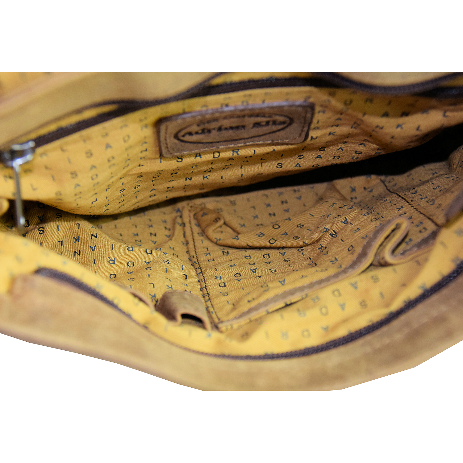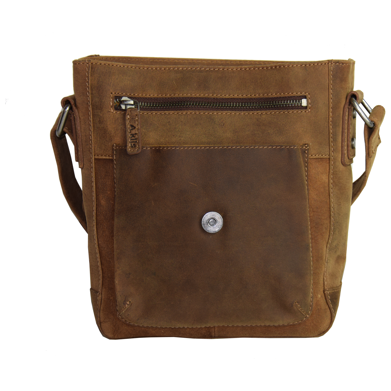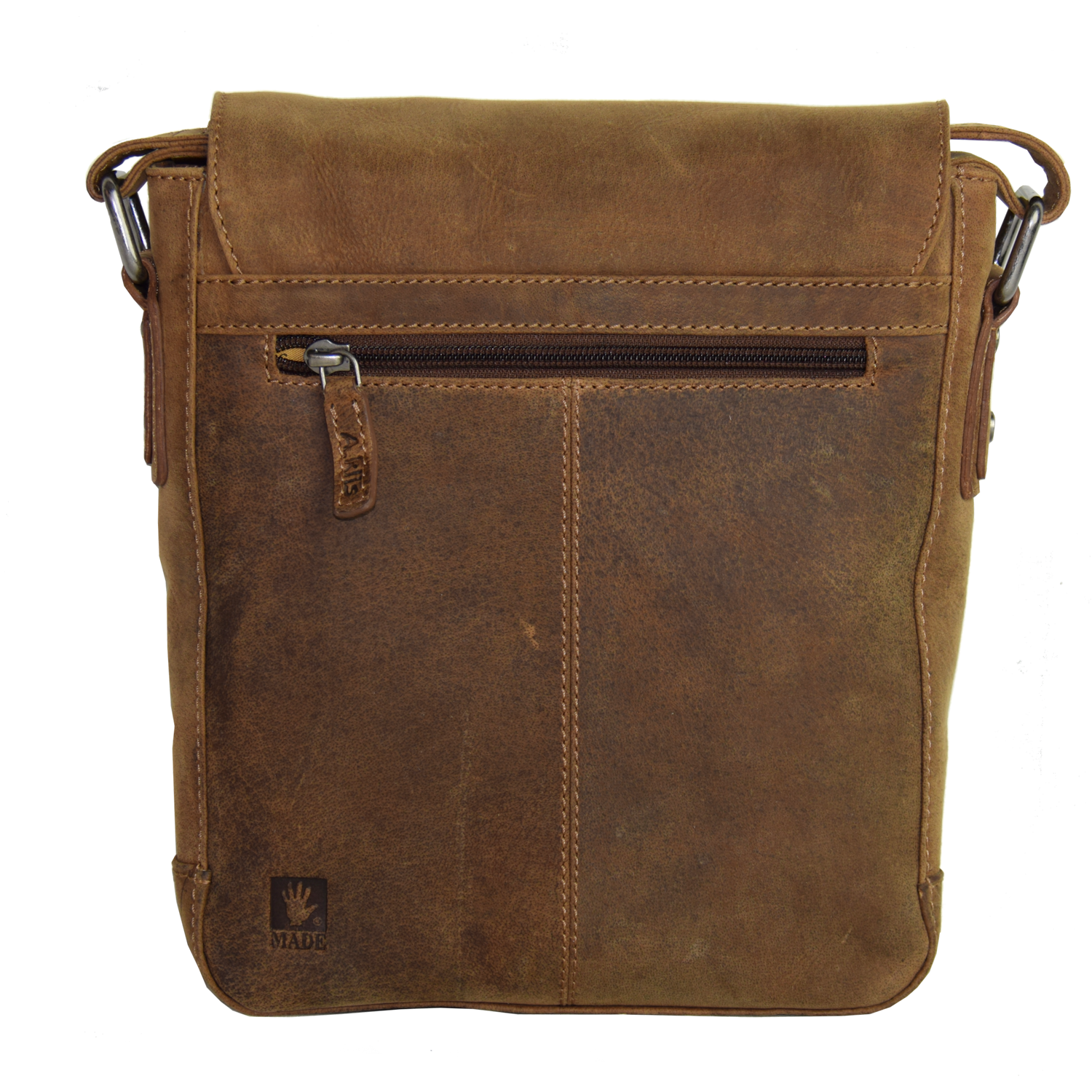Adjustable shoulder strap, bag closed with flap and magnetic snap Front open: 1 pocket closed with zipper, 1 open pocket Inside: 1 cell phone pocket, 2 pen holder, 1 pocket closed with zipper Back: 1 pocket closed with zipper |