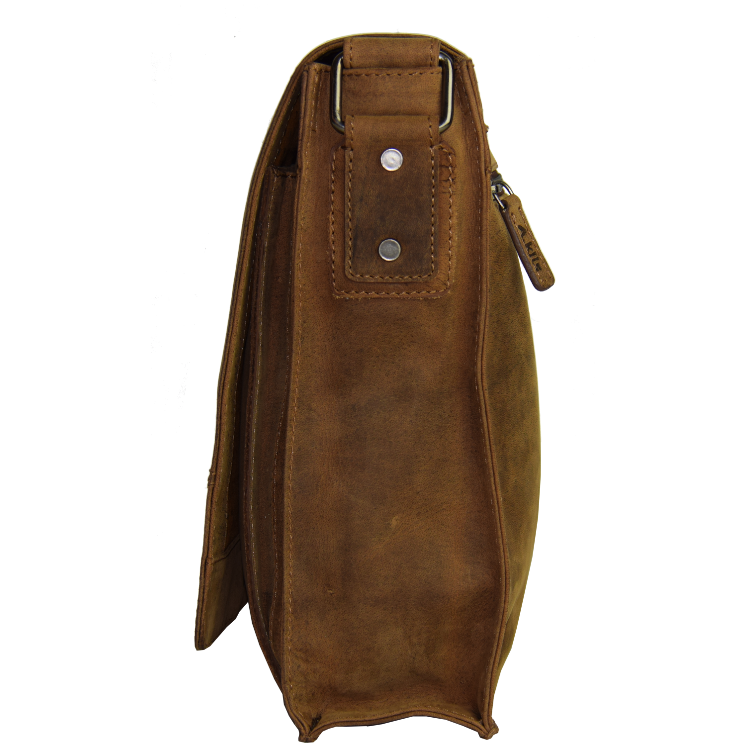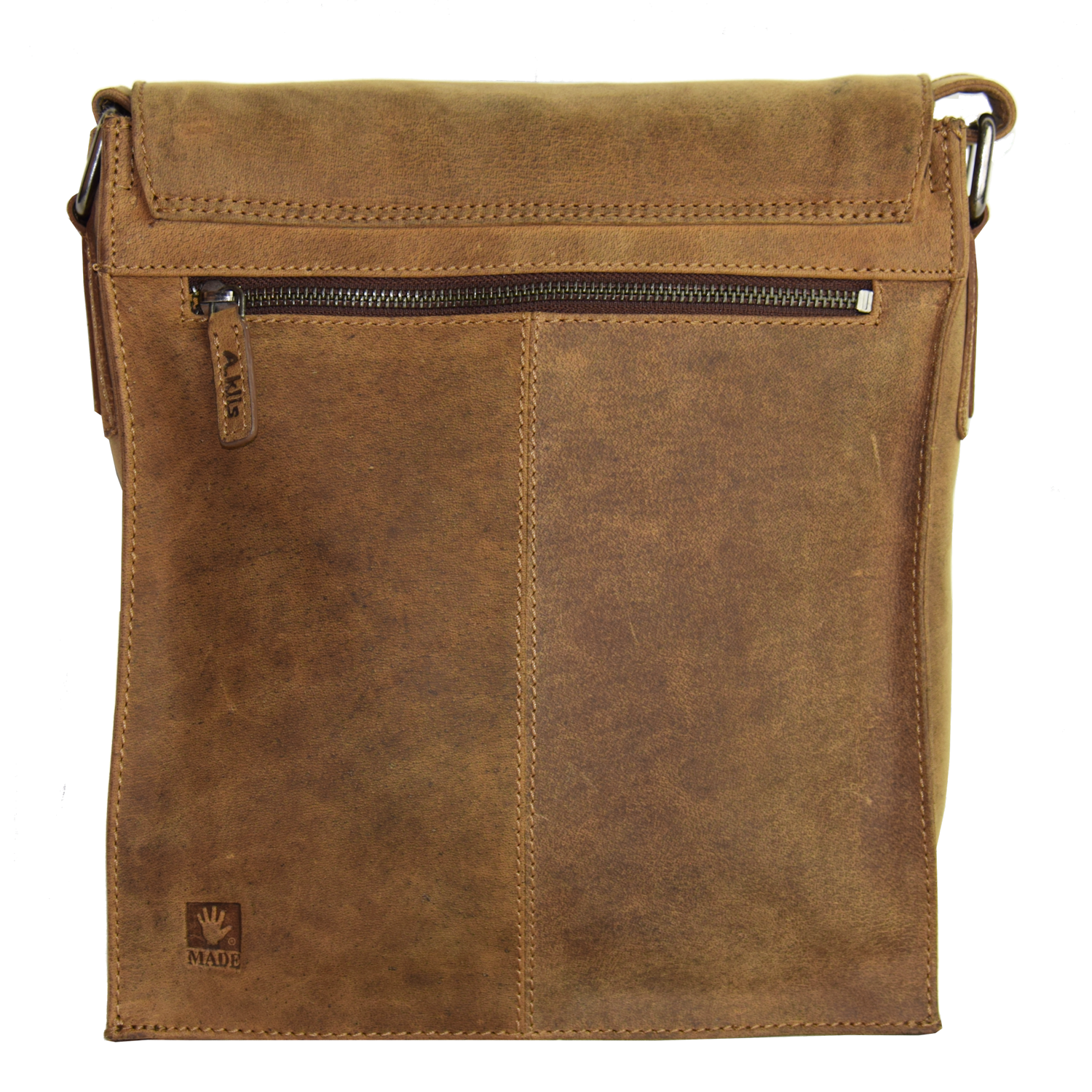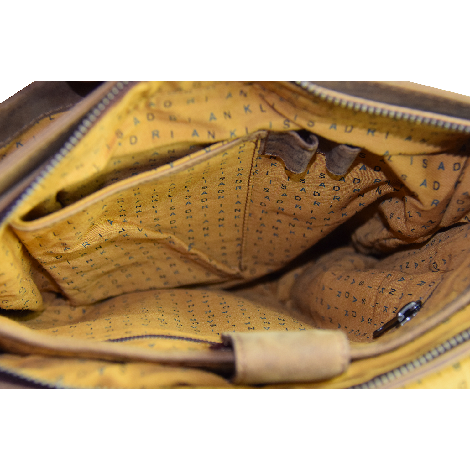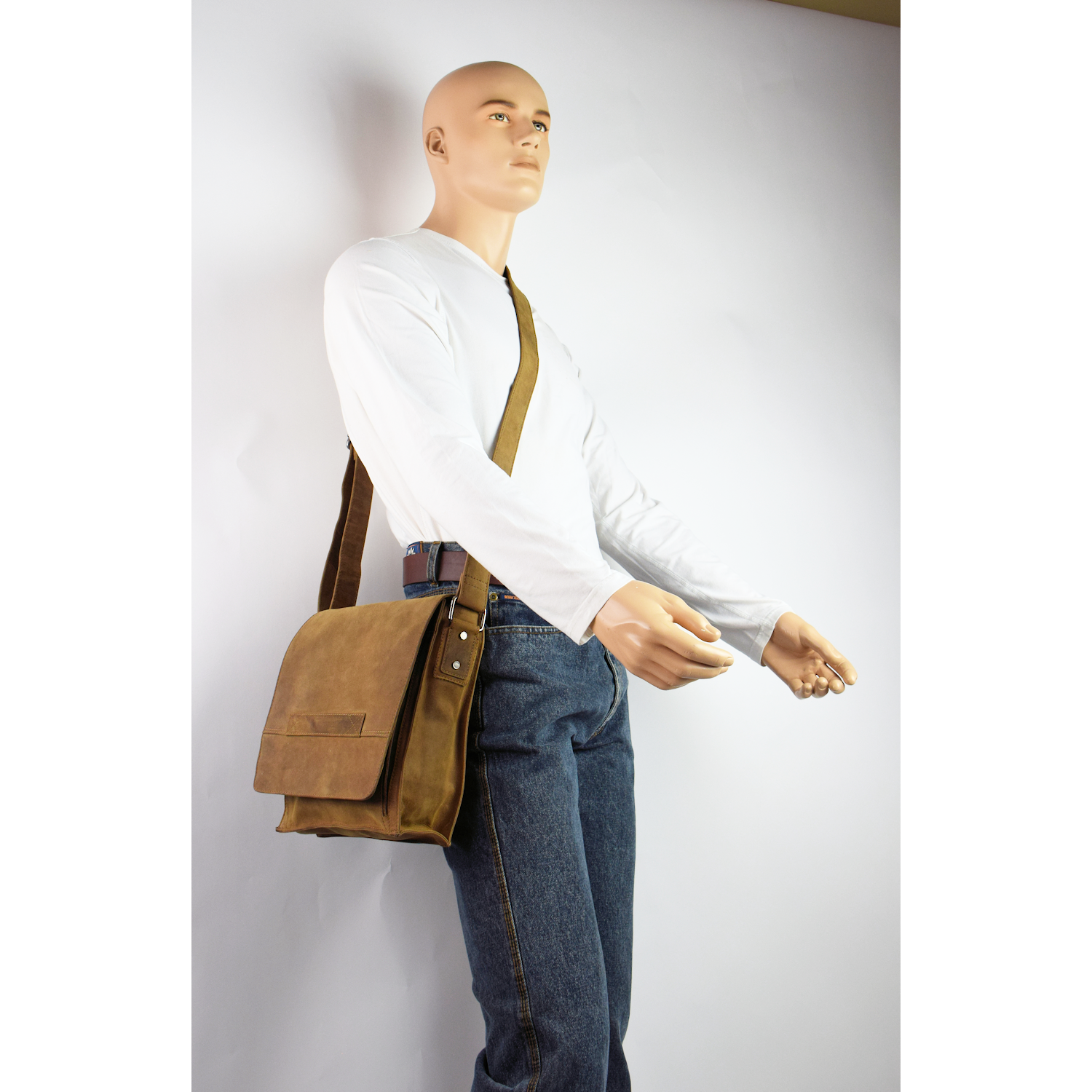Adjustable shoulder strap, bag closed with flap and snap Front open: 1 pocket closed with magnetic snap Main compartment closed with zipper Inside: 1 cell phone pocket, 2 pen holder, 1 pocket closed with zipper, 1 padded pocket for tablet closed with Velcro strap Back: 1 pocket closed with zipper |