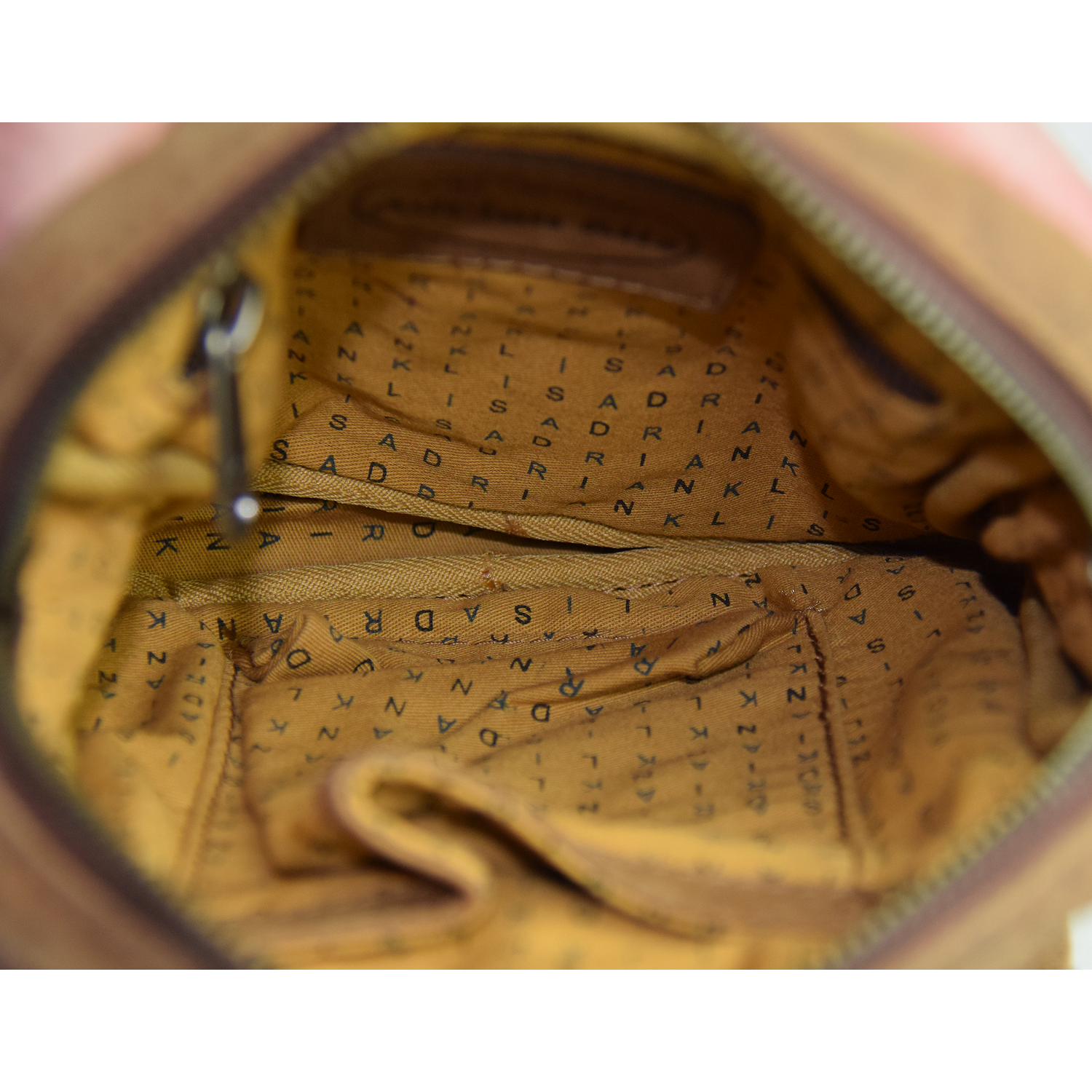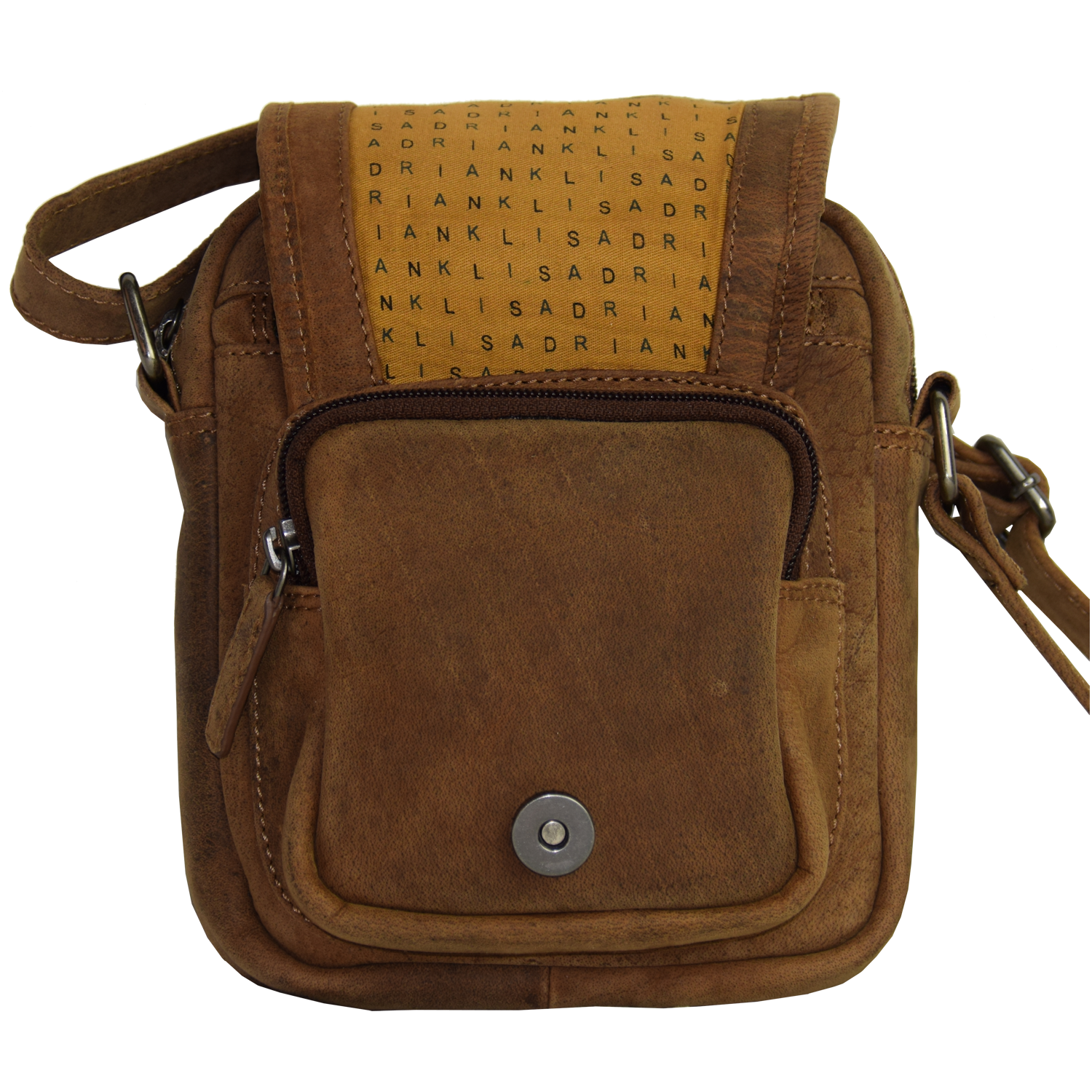 Adjustable shoulder strap, bag closed with zipper Front: 1 pocket closed with zipper, 1 pocket zipper on flap, pocket closed with magnetic snap Front pocket open: 1 pocket closed with zipper Inside: 1 cell phone pocket, 1 pocket closed with zipper Back: 1 pocket closed with zipper |