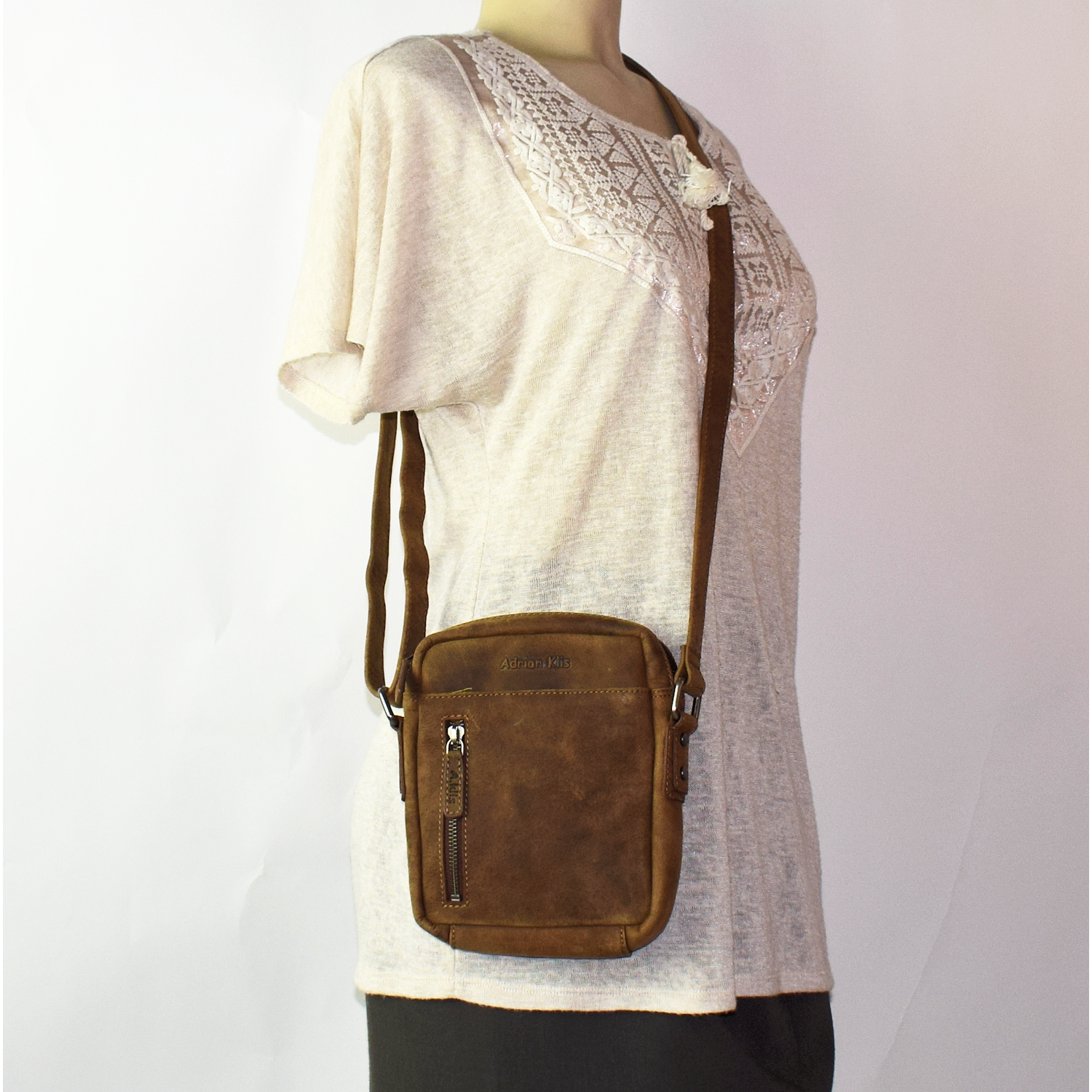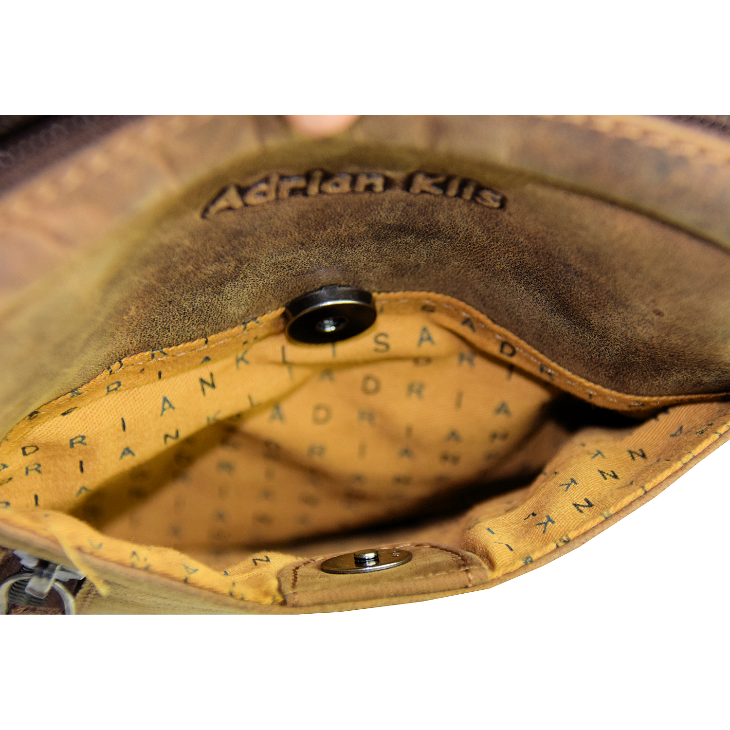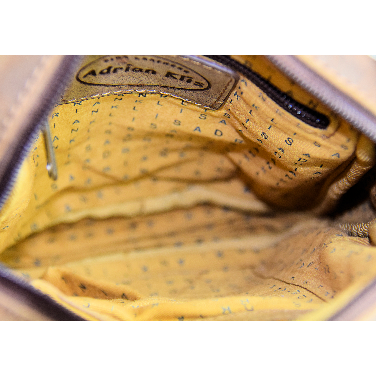 Adjustable shoulder strap, bag closed with zipper Front: 1 pocket closed with zipper, 1 pocket closed with snap Inside: 1 pocket closed with zipper Back: 1 pocket closed with zipper |