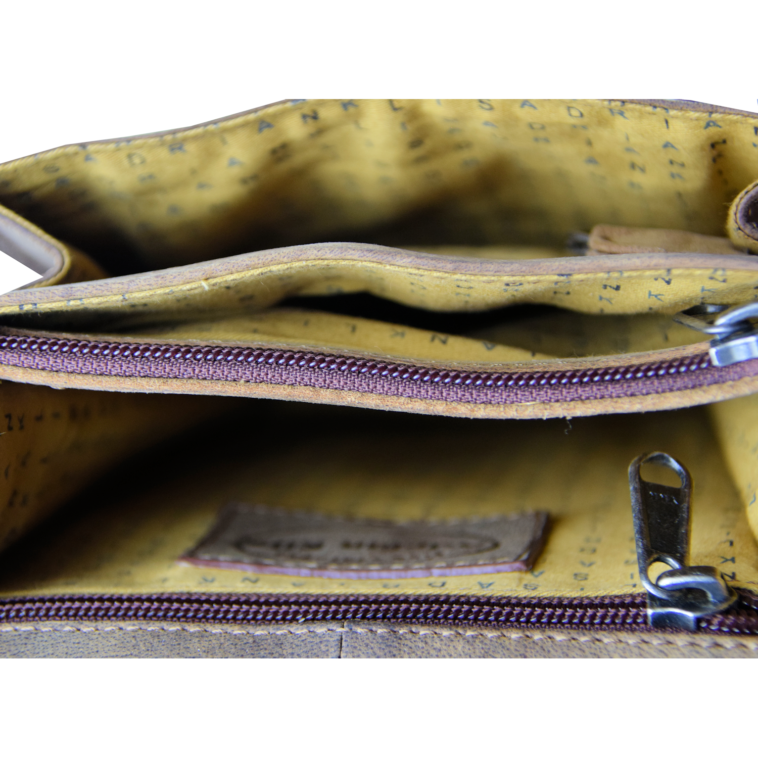 Description: | Organizer is closed with flap and snap Adjustable shoulder strap Front: 1 pocket closed with zipper, 1 open pocket with key holder, 3 Compartments closed with flap and magnetic snap: Comp. I: open pocket Comp. II: closed with zipper Comp. III: 2 pockets closed with zipper inside Back: 1 pocket closed with snap, 1 pen holder Organizer compartment closed with zipper around Inside: 2 open pockets, 2 pen holder, 1 pocket closed with zipper, 18 CC, 1 ID |