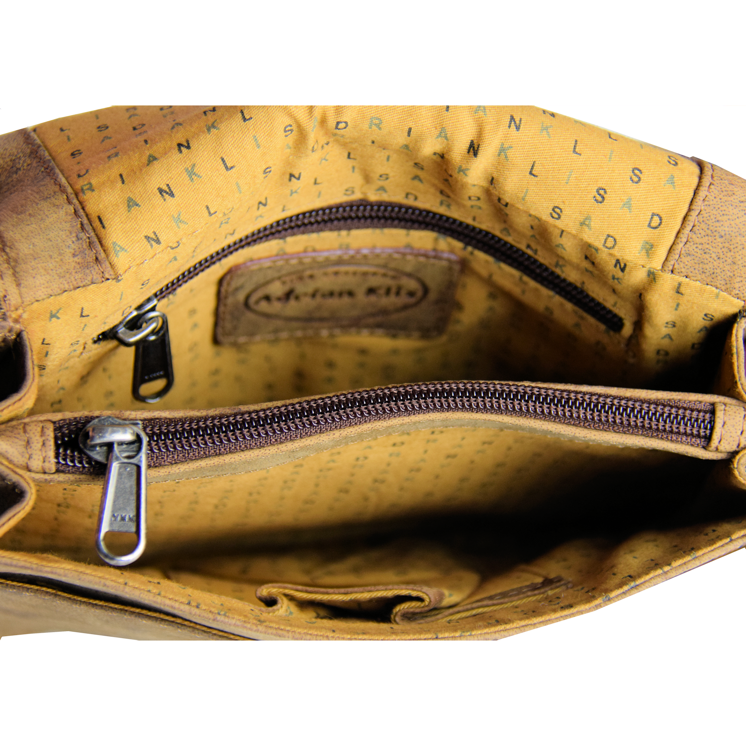Description: | Purse is closed with flap and snap, 1 adjustable shoulder strap Inside: 4 CC and 4 pockets |