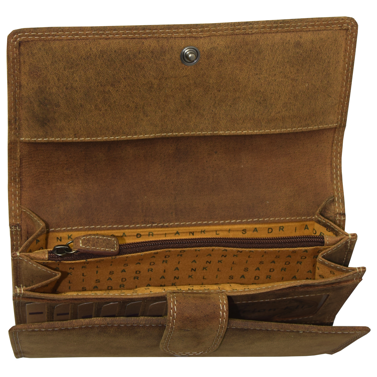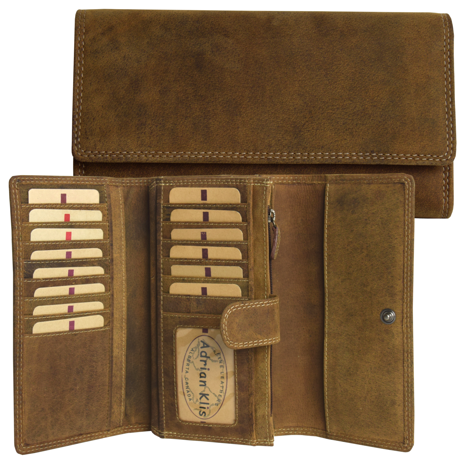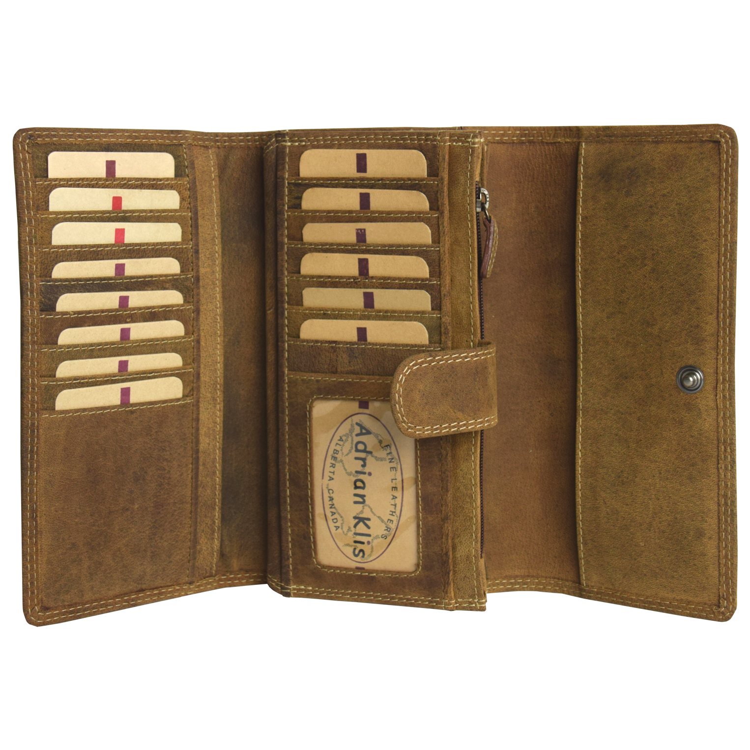 2 bill pockets, 14 CC, 4 side pockets, 1 ID pocket, 1 zipper inside, 1 coin pocket closed with zipper on outside |