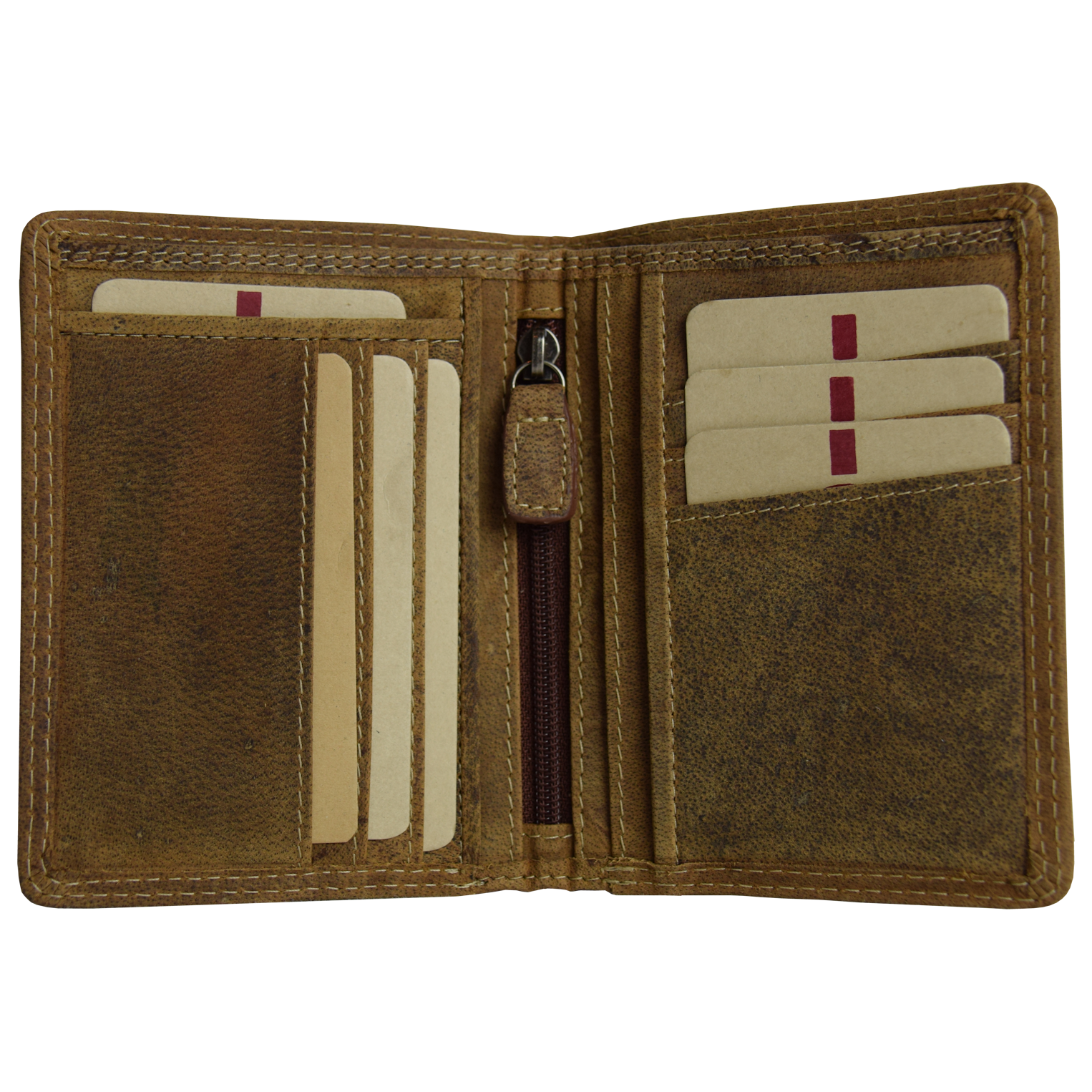1 bill pocket, 6 CC, 4 side pockets, 1 middle zipper