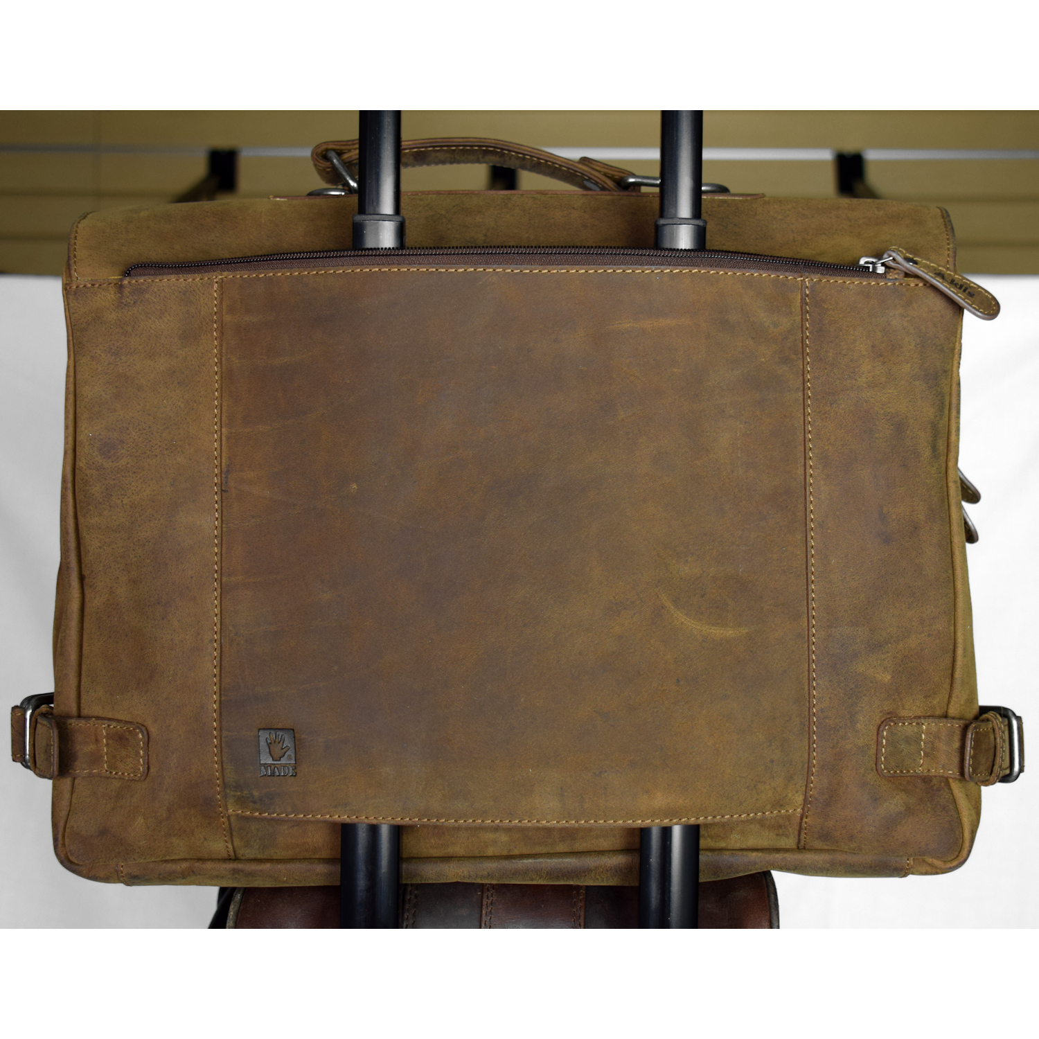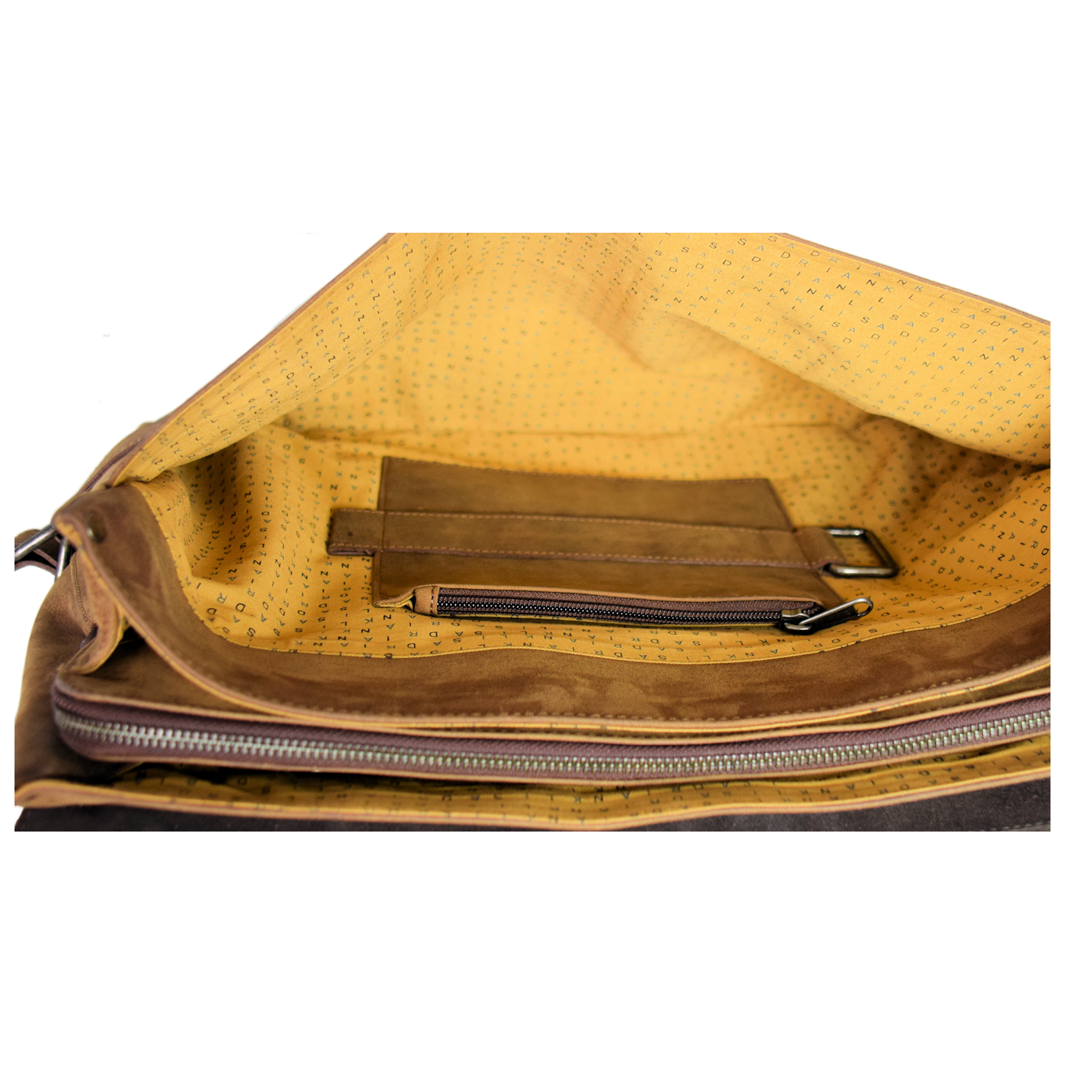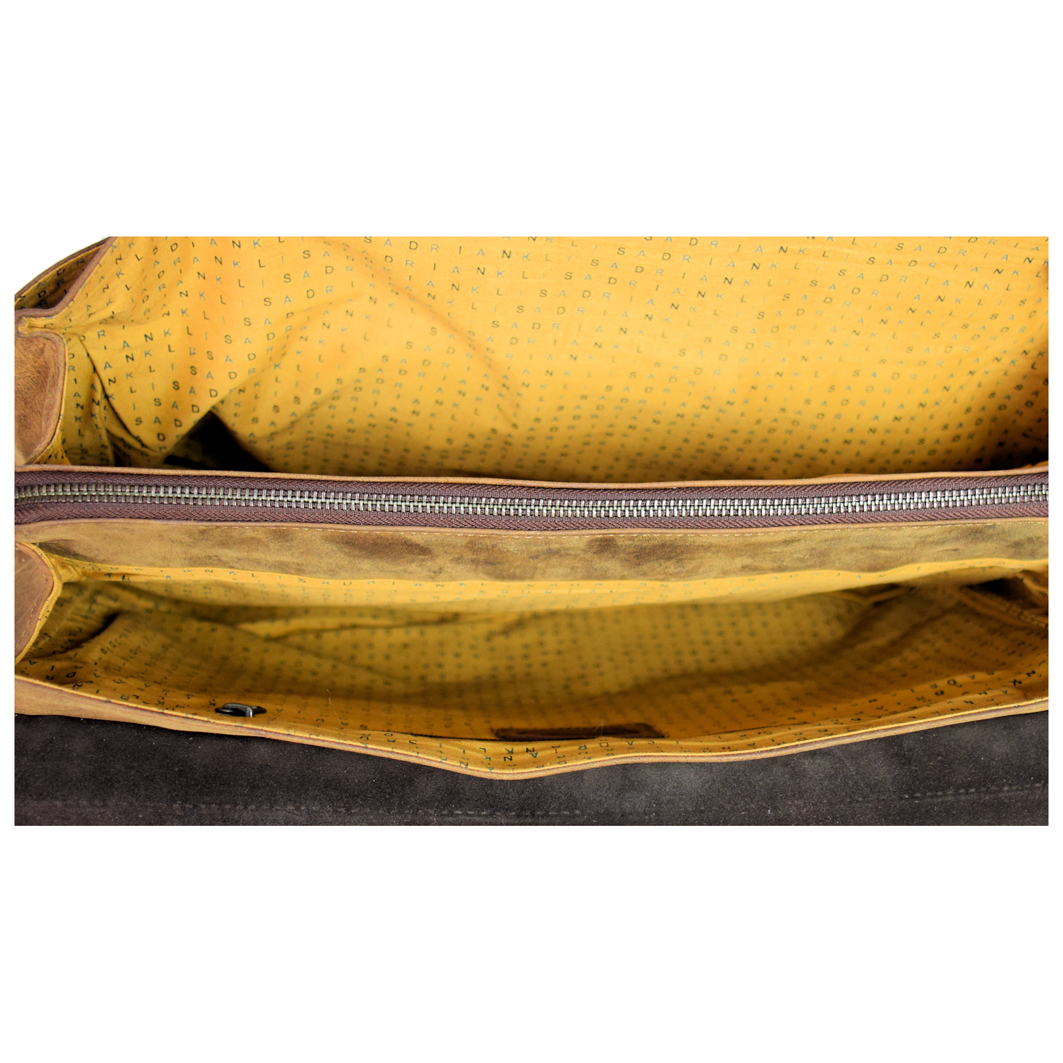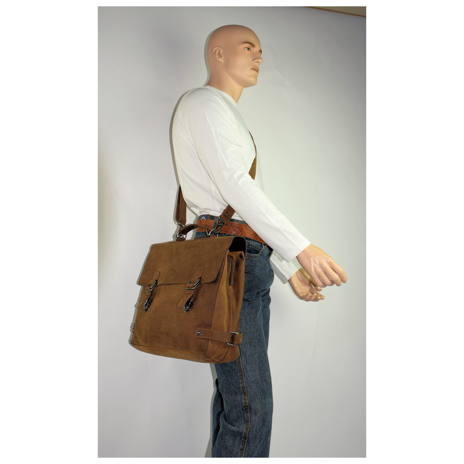 1 handle, briefcase closed with flap and 2 snaps and lock, adjustable shoulder strap attachable with carbine Back: 2 zipper for trolley handle Inside: 4 compartments I: 1 pocket closed with zipper inside II: open pocket III: large pocket closed with zipper IV: 1 pocket closed with zipper inside |
