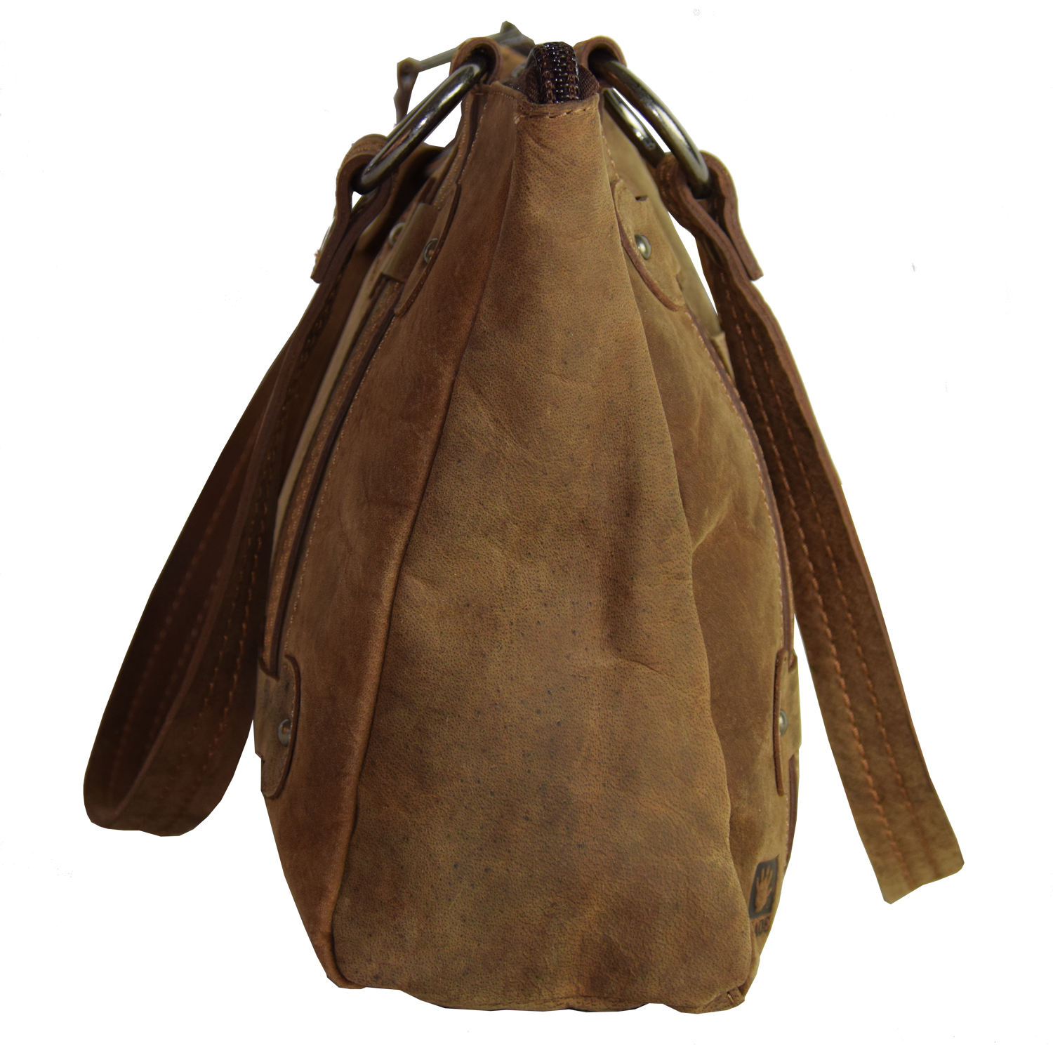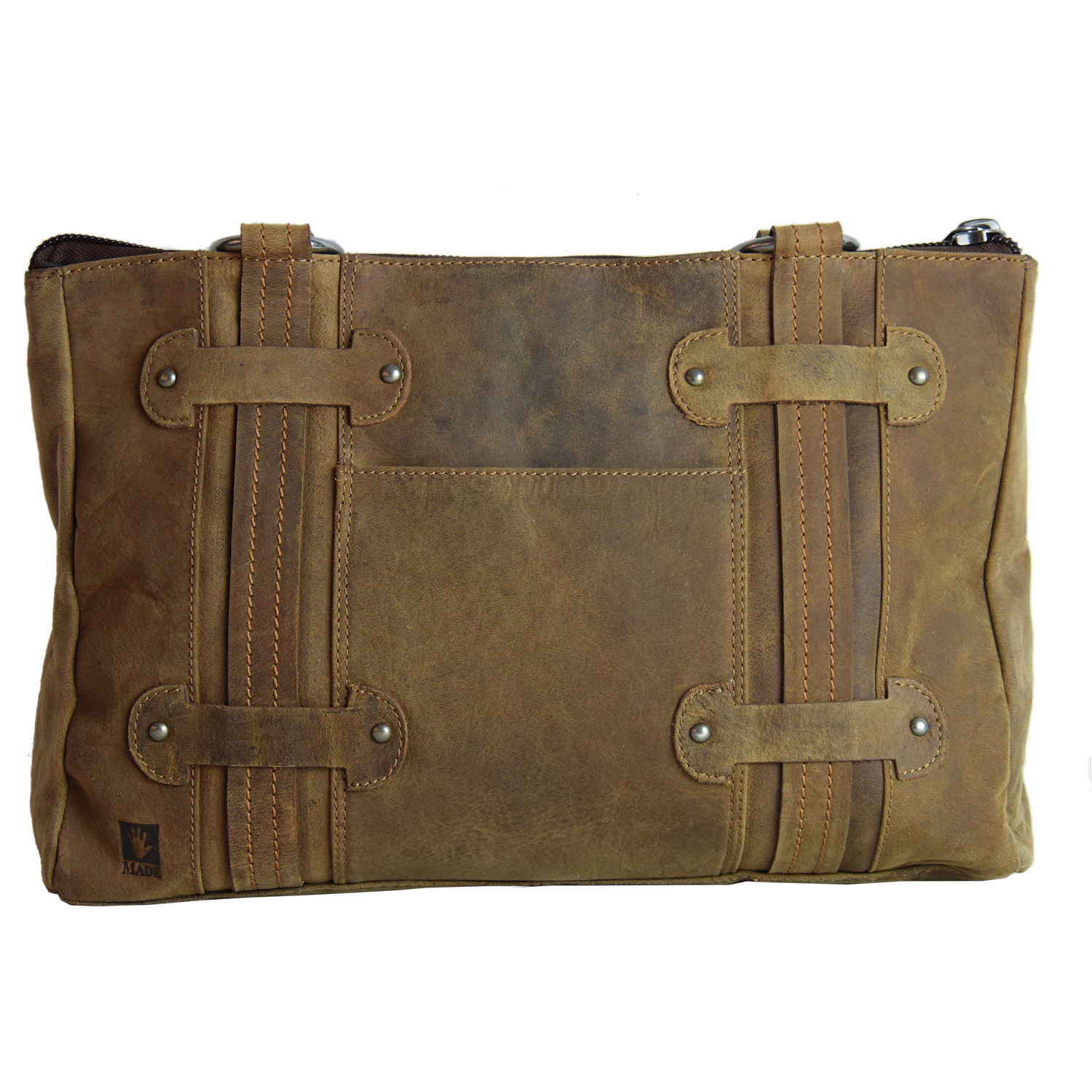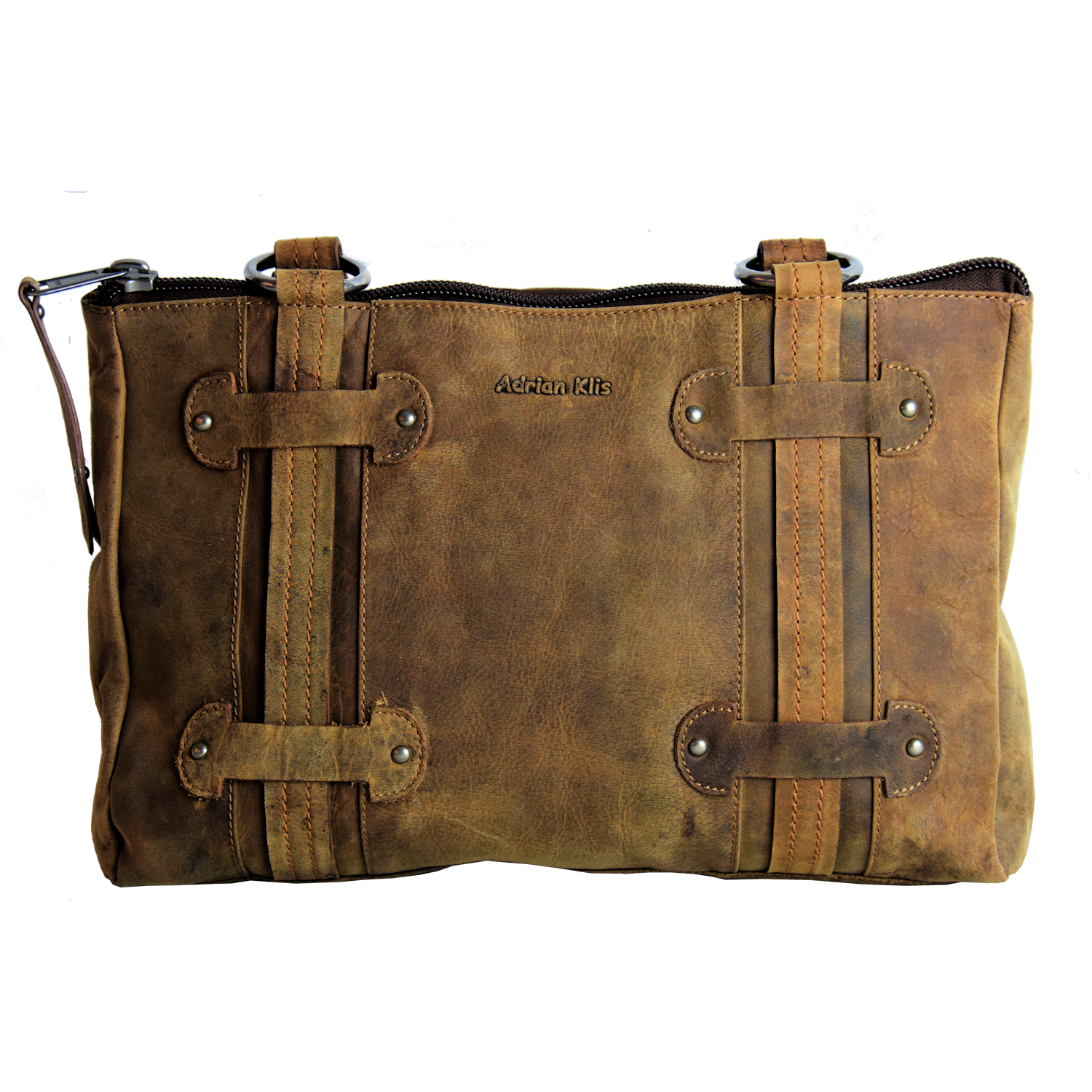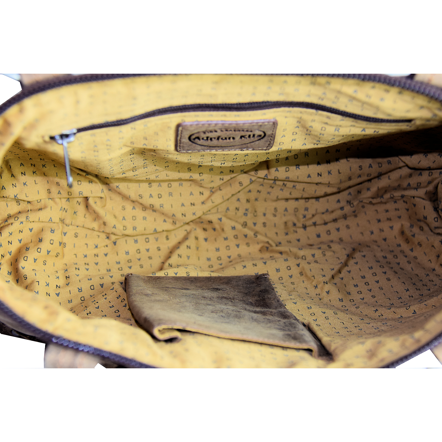 2 handle, bag closed with zipper Back: 1 open pocket Inside: 2 pockets closed with zipper, 1 open pocket |