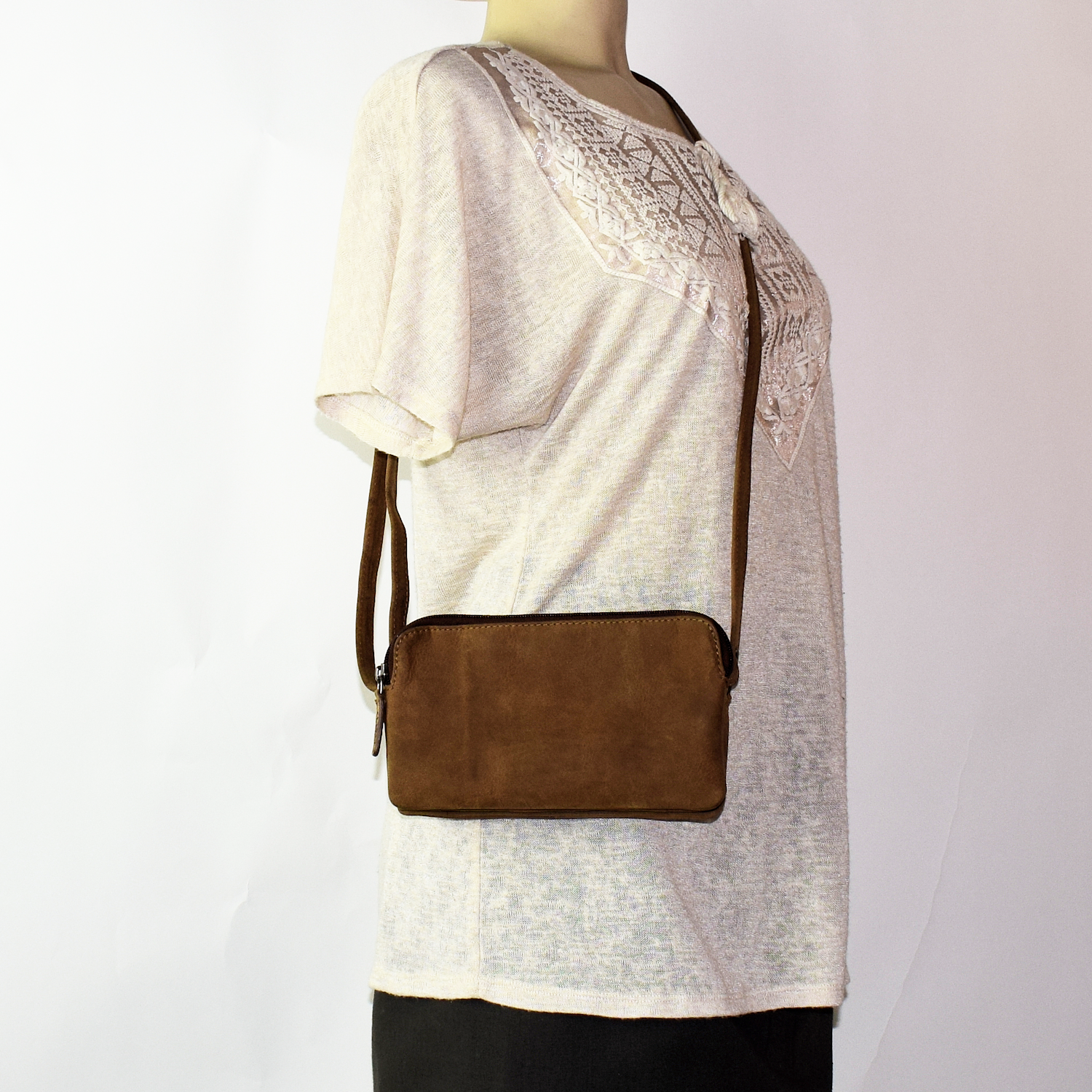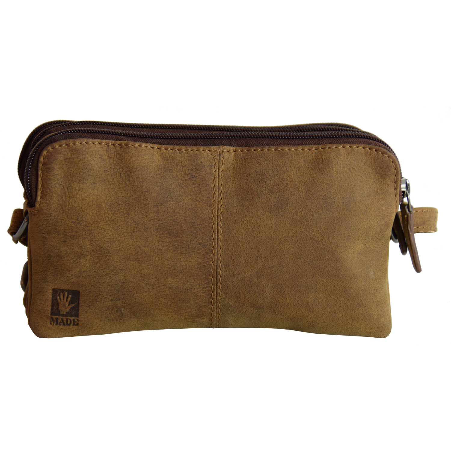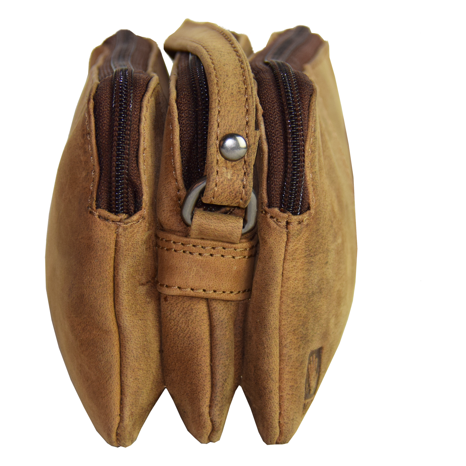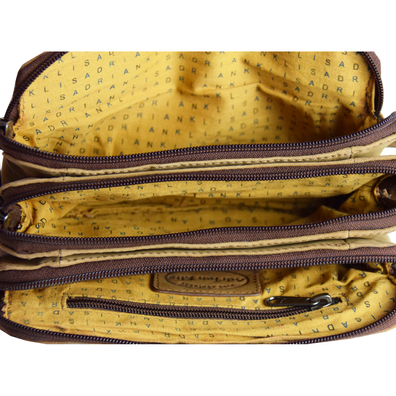 Adjustable shoulder strap, bag closed with zippers Bag has 3 compartments, each closed with zipper. 1 compartment has 1 pocket closed with zipper inside. |
