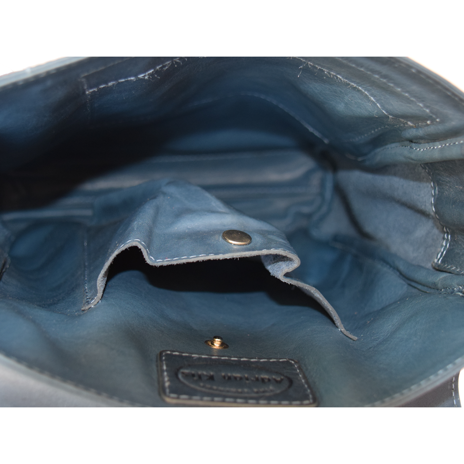 1 Main compartment, cell phone pocket inside closed with snap, leather lining