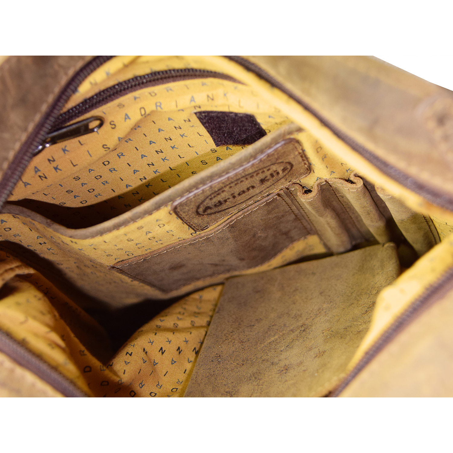 Description: | Bag has adjustable shoulder strap Back: 1 pocket closed with zipper 1 Main compartment closed with zipper Inside: 1 padded pocket, 3 pen holder, 1 cell phone pocket, 1 pocket closed with zipper, ID pocket |