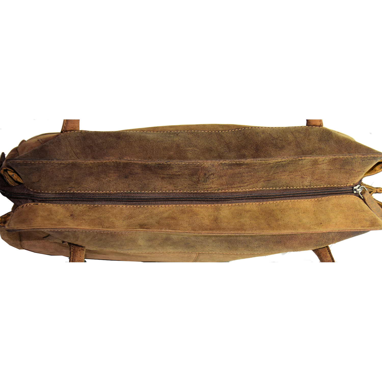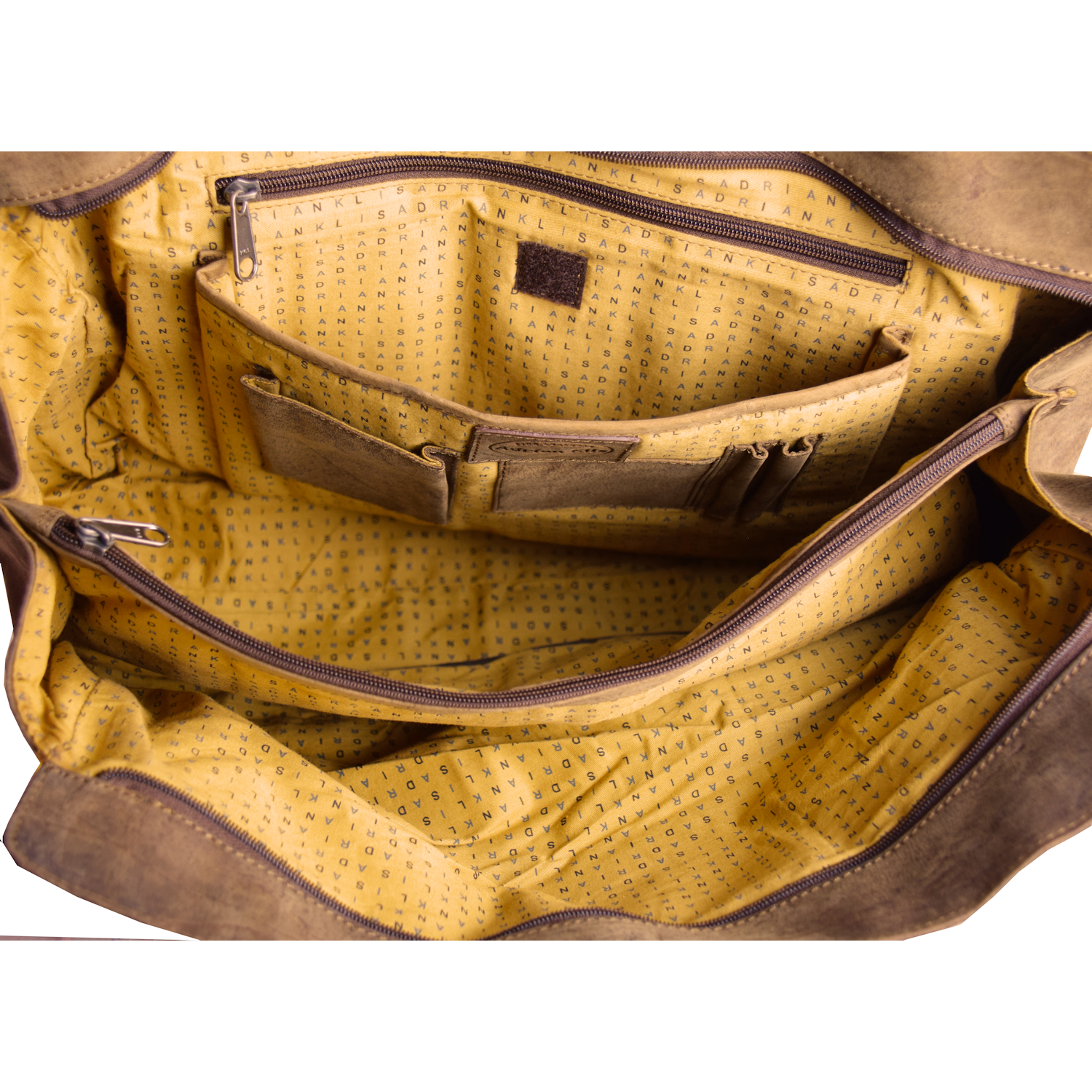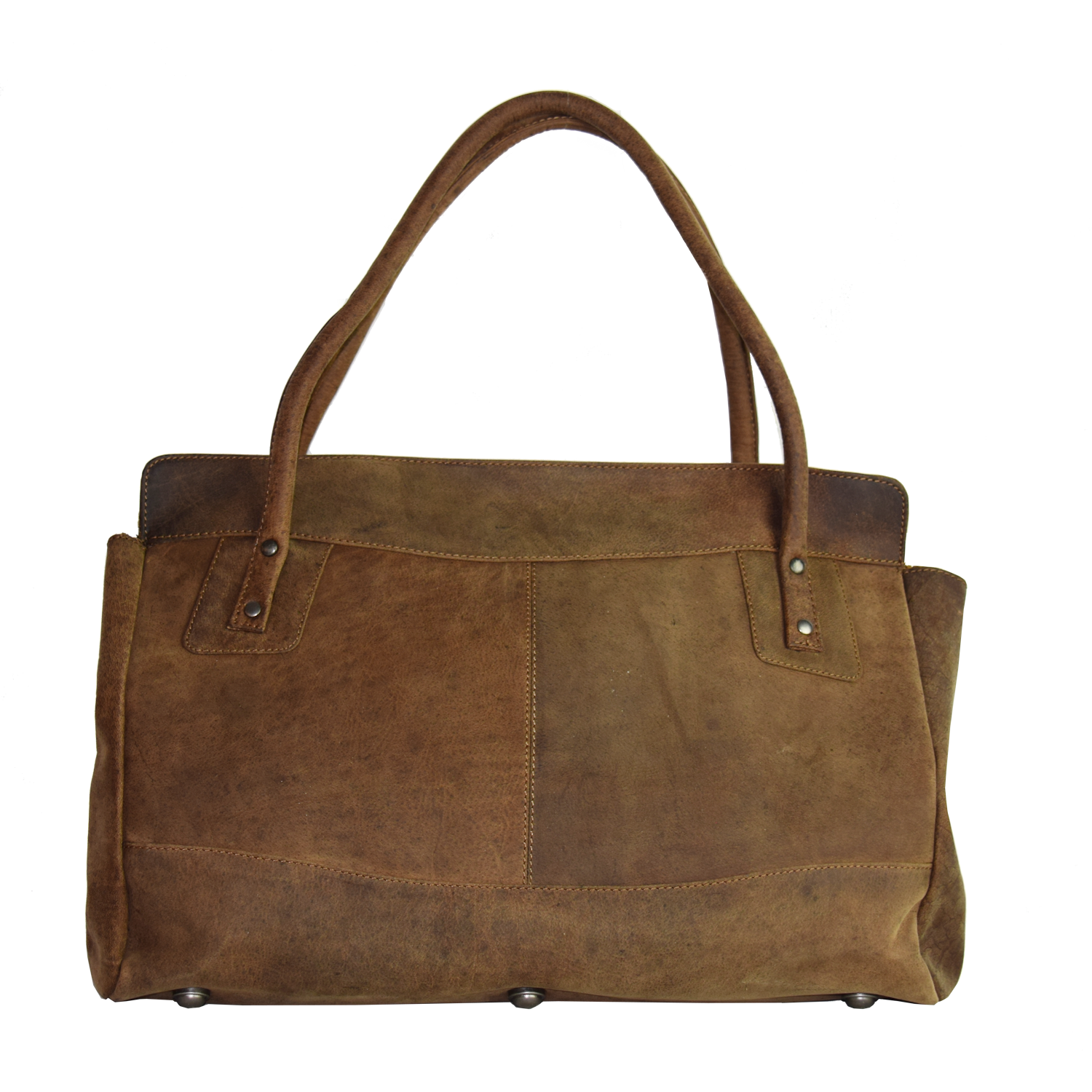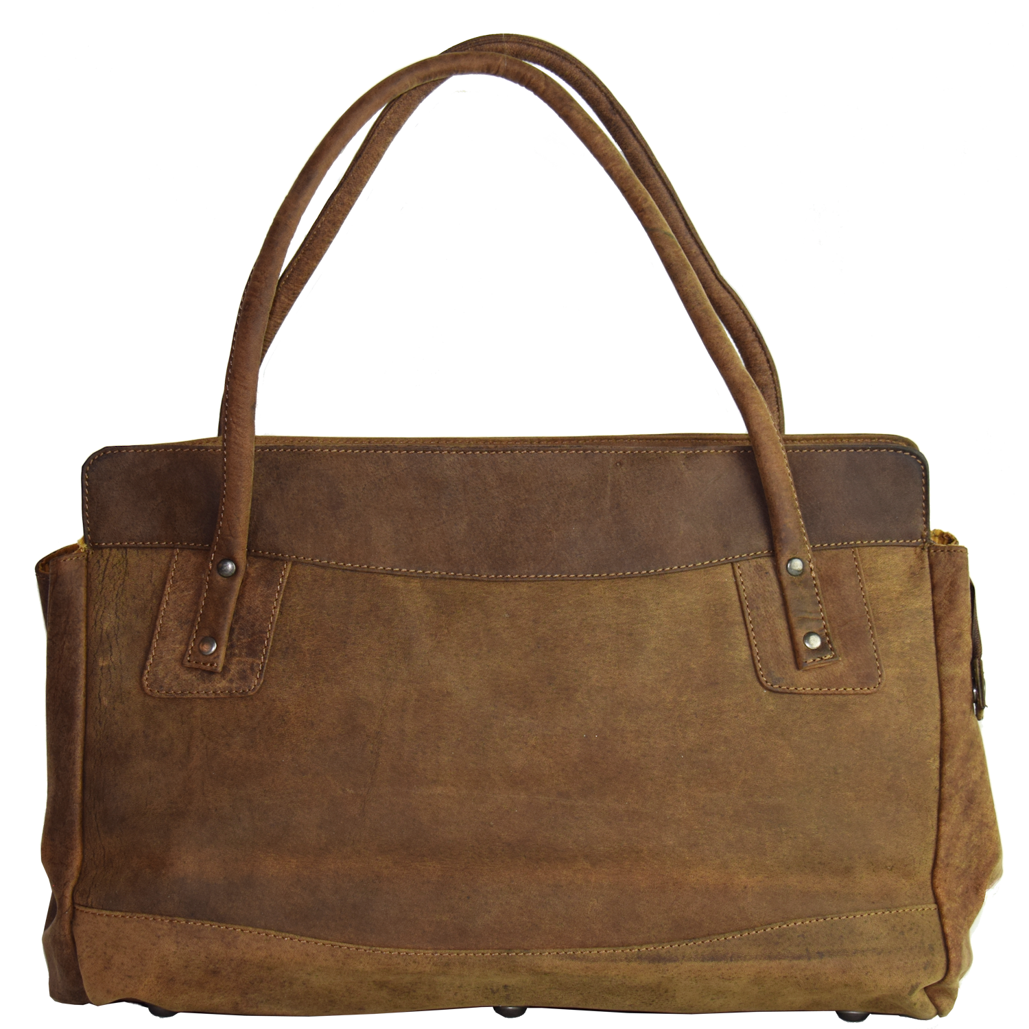Bag has 2 handle Back: 1 pocket closed with zipper Main compartment closed with zipper Inside: 1 pocket closed with zipper, 1 open slip with flap, 1 cell phone pocket, 1 open pocket, 3 pen holder |