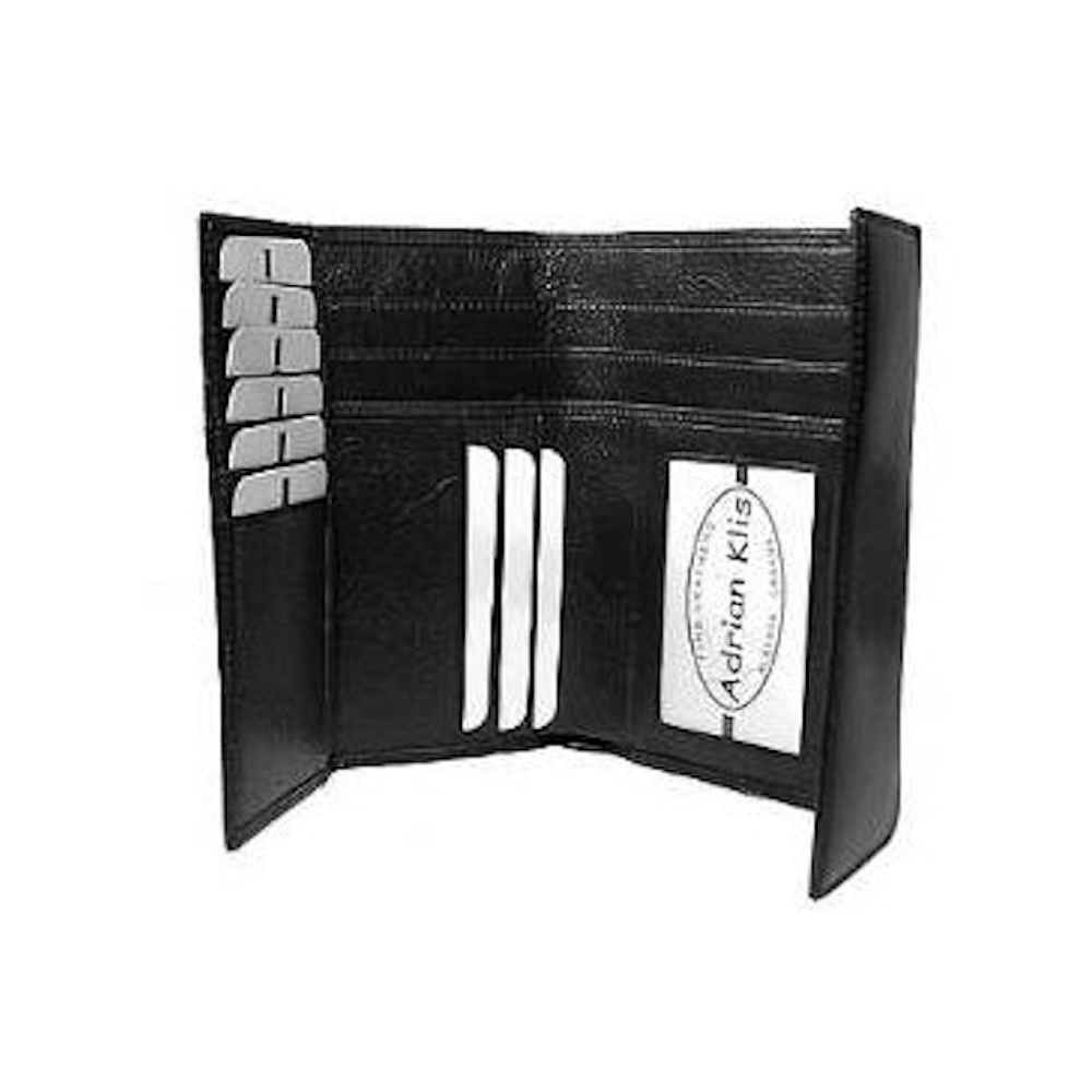 3 bill pockets, 15 CC, 2 side pockets, 1 ID pocket, 1 coin pocket closed with zipper