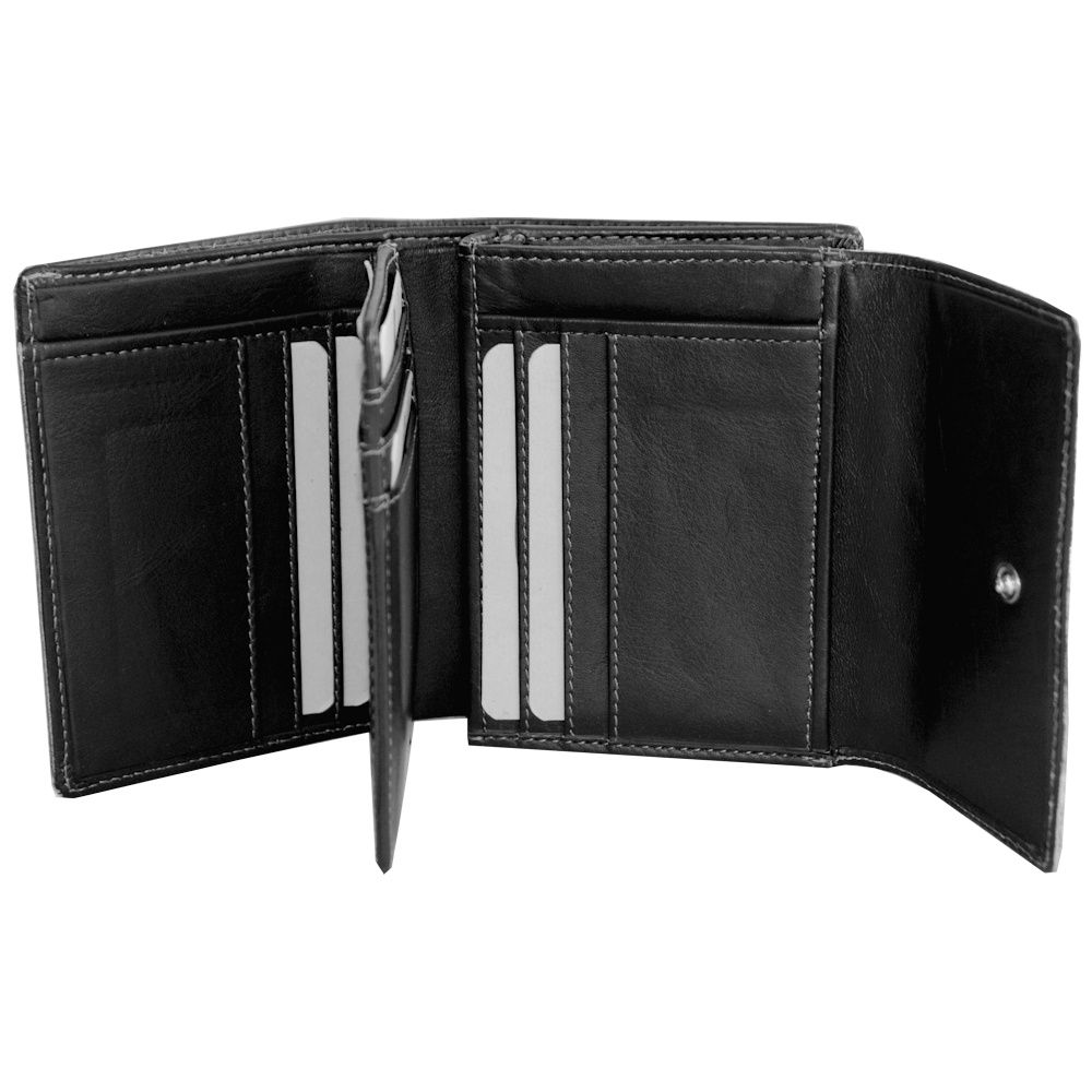 1 bill pocket, 10 CC, 8 side pockets, 1 ID pocket, 1 coin pocket divided in two compartments, closed with zipper |
