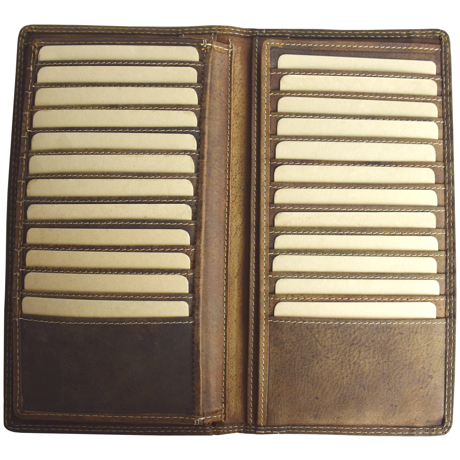 1 clear ID picture frame, 36 CC compartments, 1 passport pocket, 1 deep open pocket, 6 open pockets |